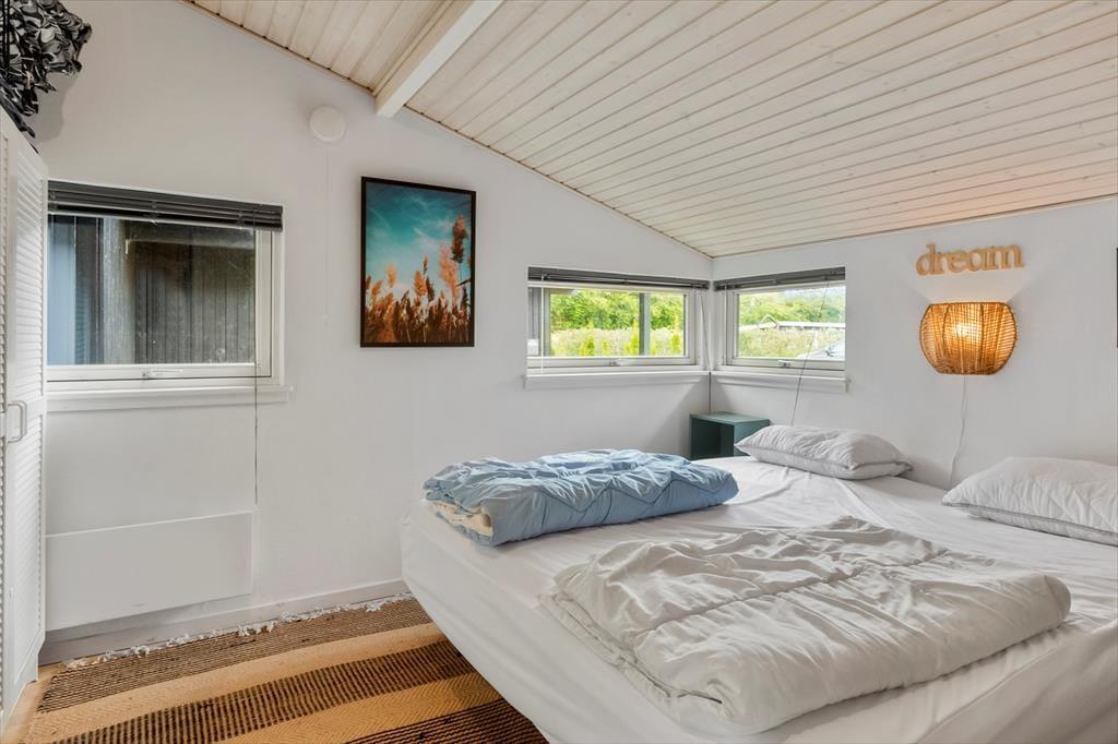Sommerhuset rummer op til 8 voksne og 2 børn fordelt på 140 m². Her finder I en indbydende entré og fire komfortable soveværelser: To med dobbeltsenge, ét med tre enkeltsenge og ét med en køjeseng – perfekt til børn.