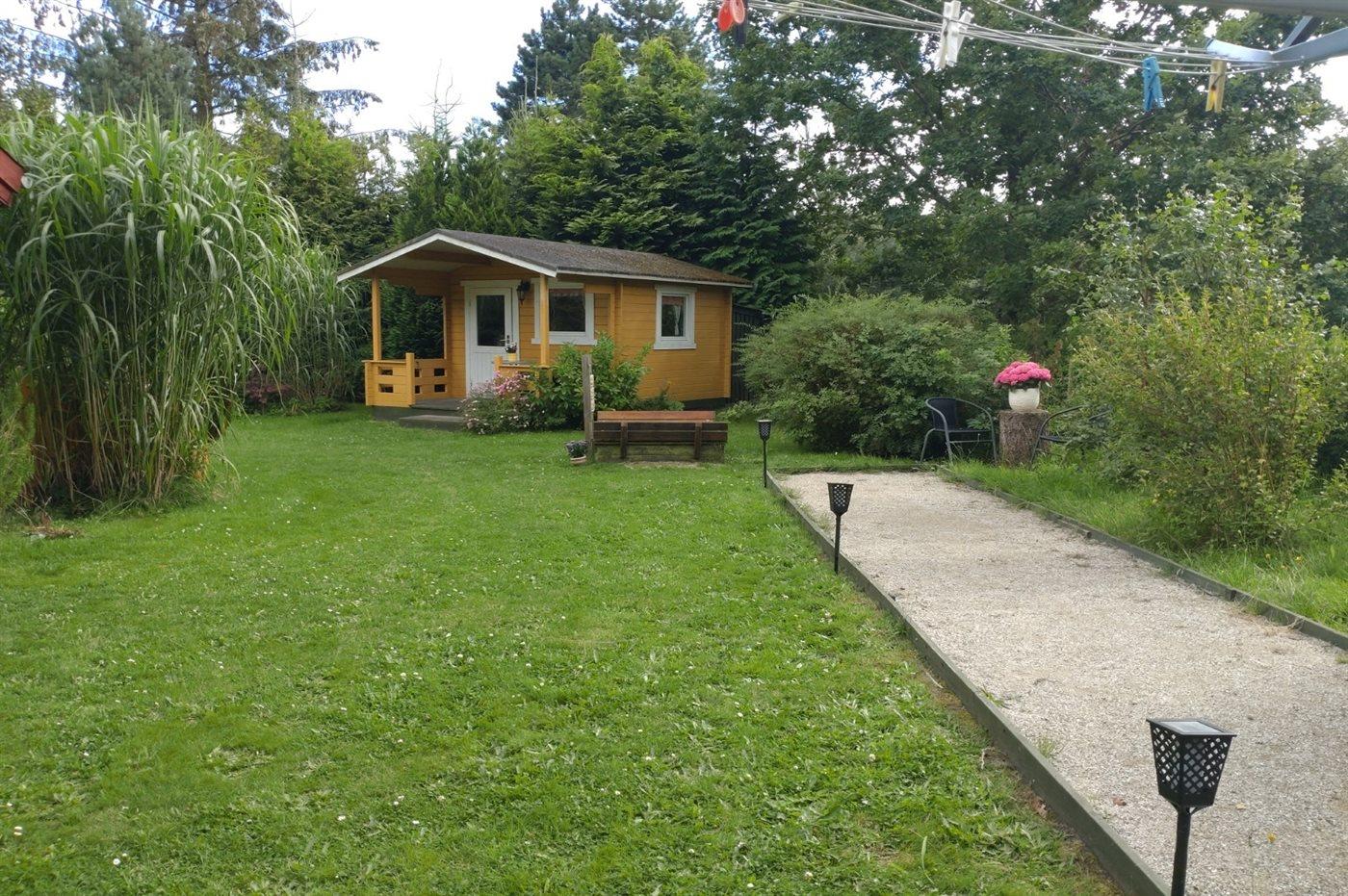 3. Bjælkehytte med et rummeligt værelse på ca. 10 m2. Bjælkehytten er af tykke bjælker, men ikke isoleret. (Kan dog også bruges i ydersæson, da der er radiator og elektriske varmetæpper i sengene.)
