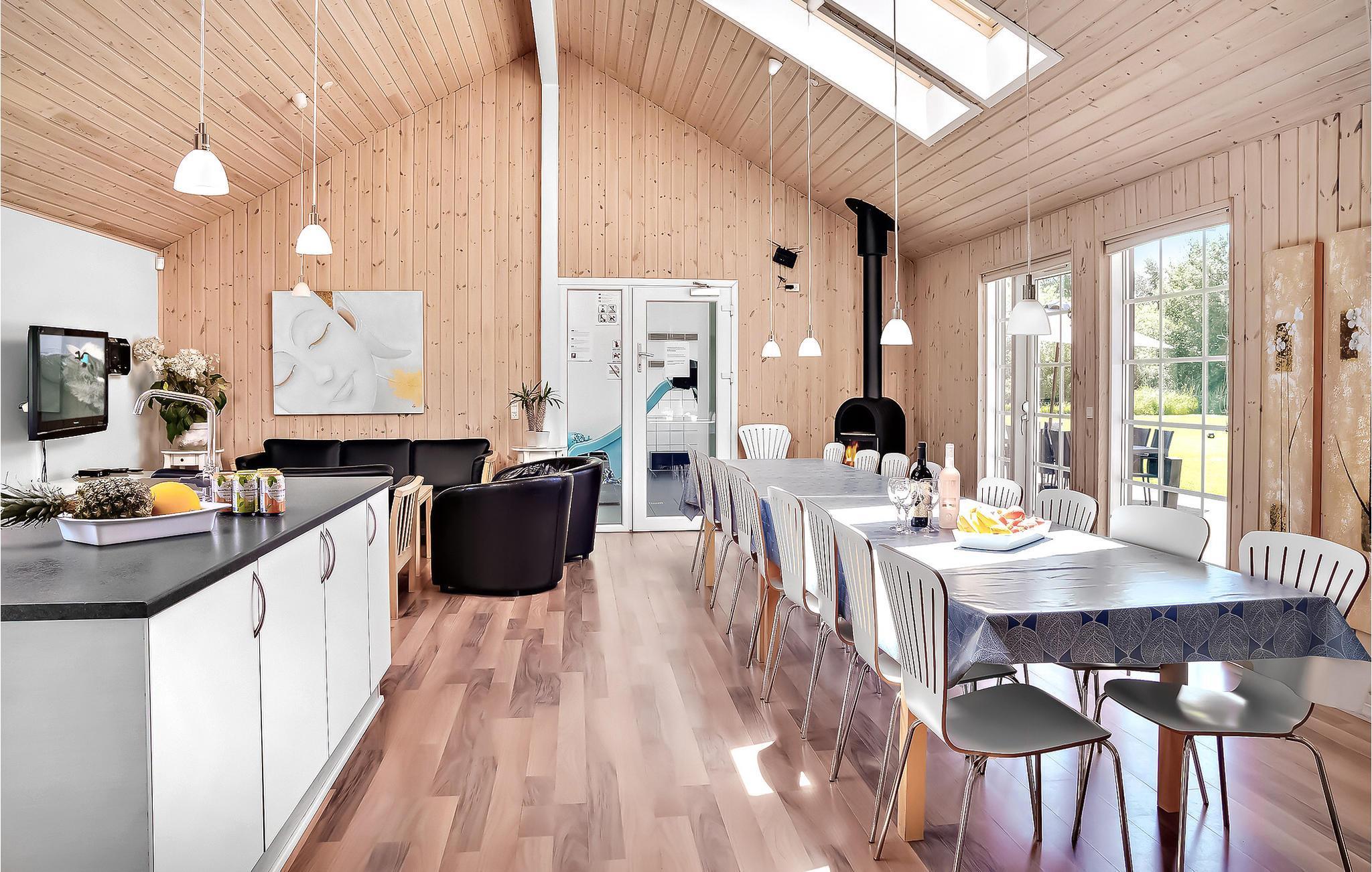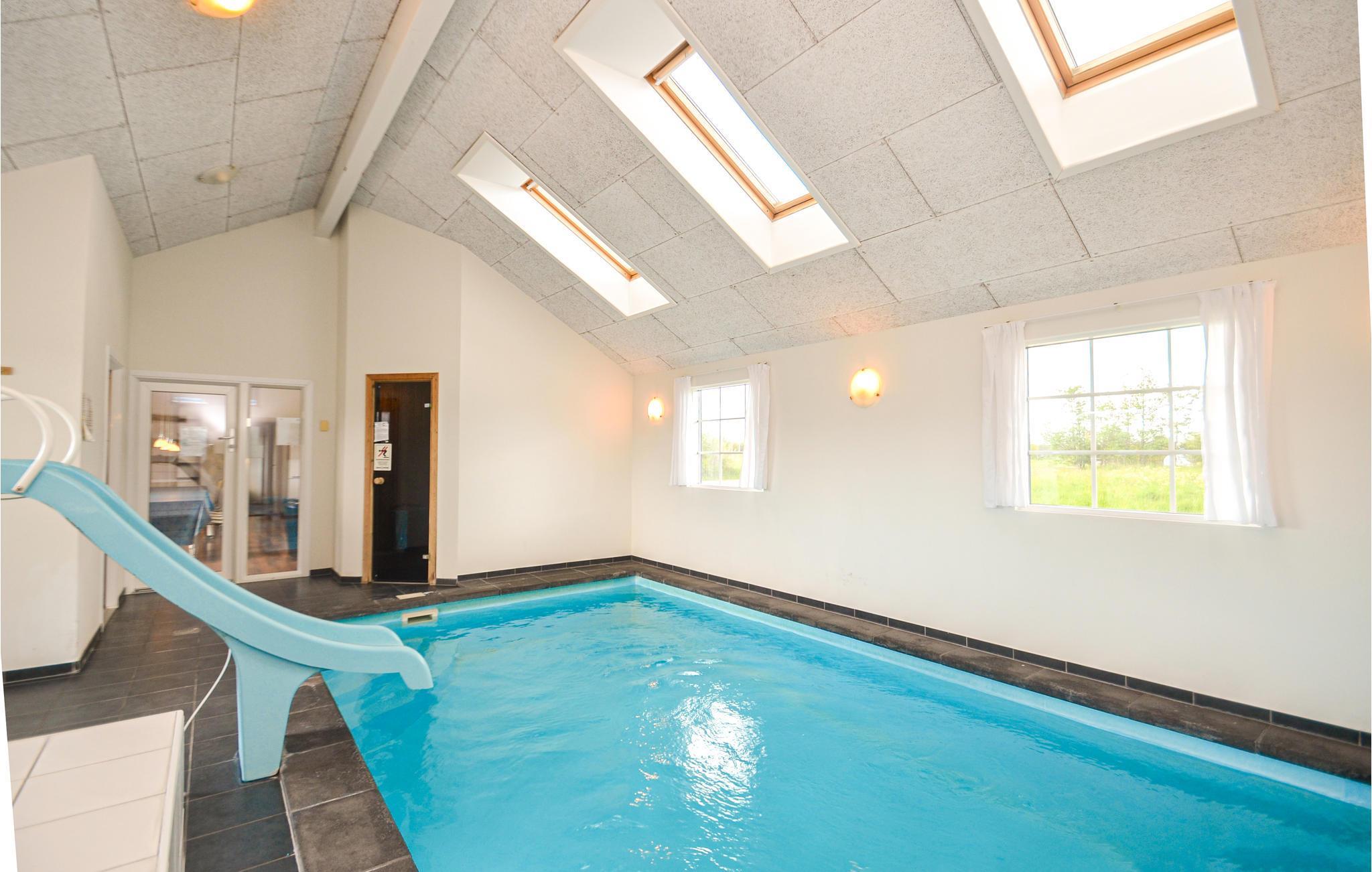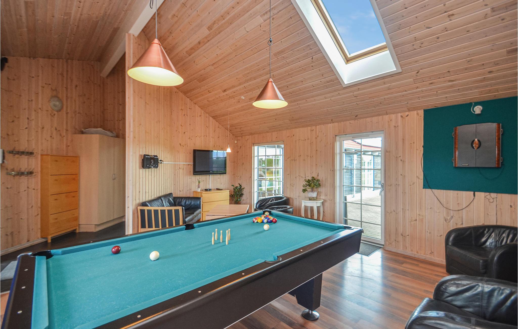 Luksusferie for hele familien uanset årstid. Med sine mange kvadratmeter er dette skønne feriehus velegnet til to-tre familier. Det store poolrum med swimmingpoolen og 4 personers spabad vil helt sikkert blive det mest attraktive rum for børn og andre badeglade gæster. Huset er indrettet i moderne stil med eksklusive møbler og det flotte køkken-/stueområde ligger som husets absolutte midtpunkt, hvor I alle kan samles. I aktivitetsrummet kan I hygge jer med et spil billard eller bordtennis mens børnene spiller playstation. Huset ligger i et populært feriehusområde i gåafstand til stranden og købmanden.
