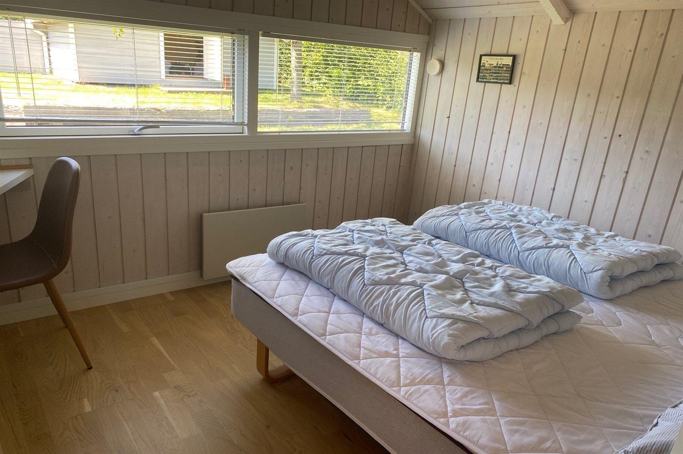 Der er i alt 3 soveværelser. Sovepladserne fordeler sig på: 4 sovepladser i dobbeltsenge. 1 soveplads i enkeltseng. 2 sovepladser i køjeseng. Derudover er der 1 stk. barneseng.