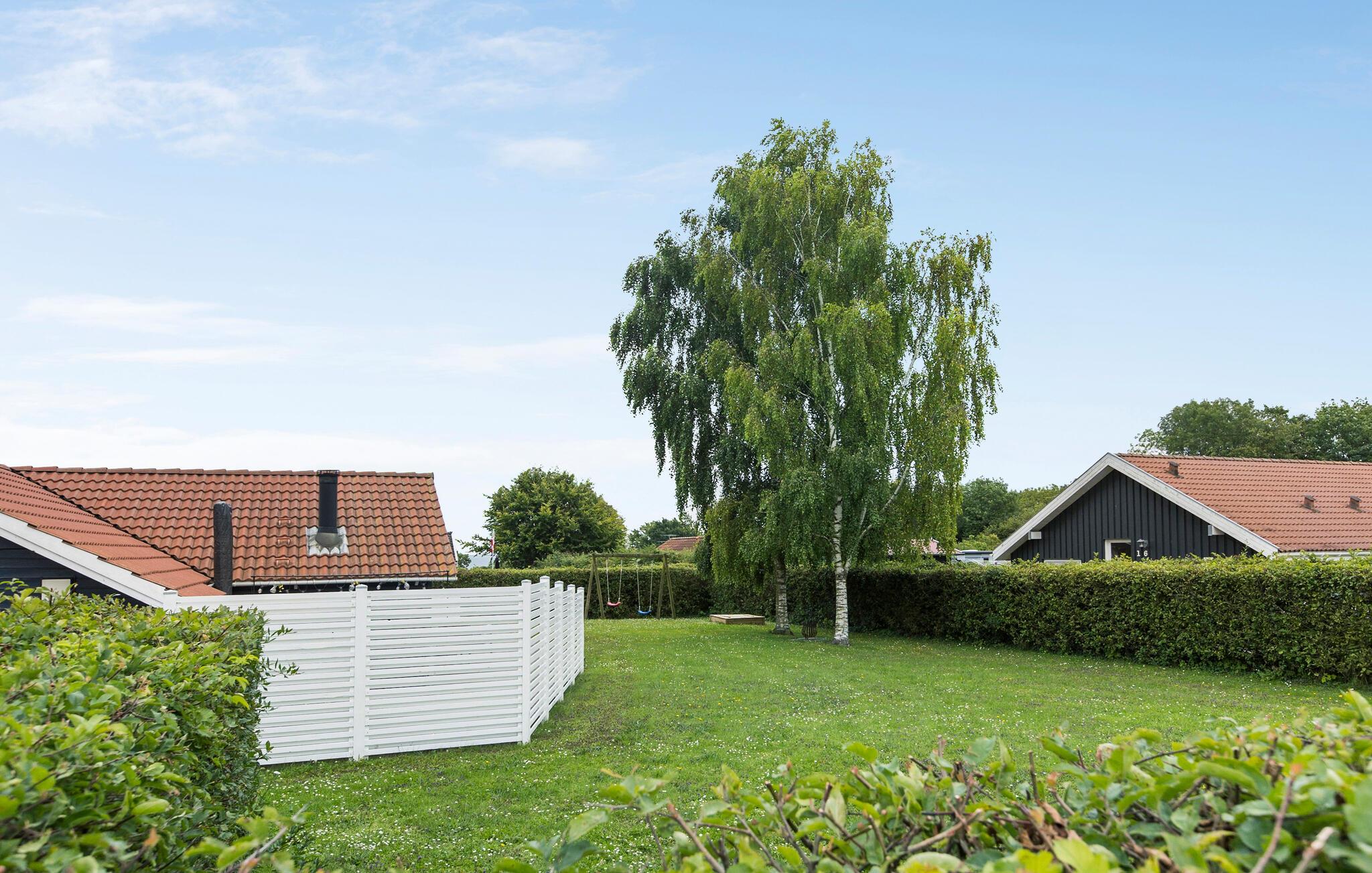 Udenfor er en del af den store terrasse overdækket, så I kan nyde den friske luft selv i skiftende vejr. Hold grillaftener for hele familien og lad børnene lege i haven.