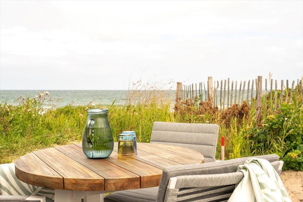 Huset har ikke nogen traditionel have – men med klitterne som nærmeste nabo og en privat trappe direkte ned til stranden, er det ikke noget, du vil savne. Rundt om huset ligger en træterrasse, hvor du kan nyde en rolig stund i solen, tænde op i gasgrillen eller bare trække vejret dybt og lytte til havet. Her leves ferien helt uden filter – med bare fødder, salt i håret og havet som det naturlige samlingspunkt.