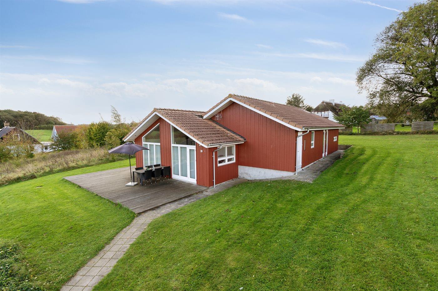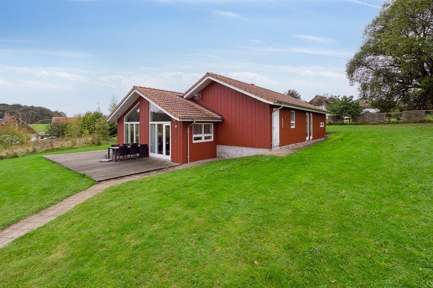 Et sommerhus med havudsigt fra såvel hus som grund - beliggende i et roligt ferieområde.