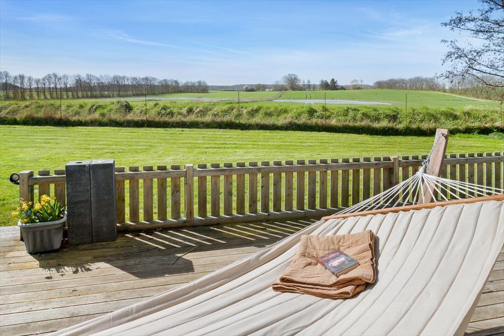 Huset ligger fredeligt for enden af en grusvej. Det betyder, at du kan nyde den fantastiske udsigt over markerne, hvor der ofte løber råvildt og harer forbi. Ved siden af er ét andet hus, hvor ejerne selv bor.