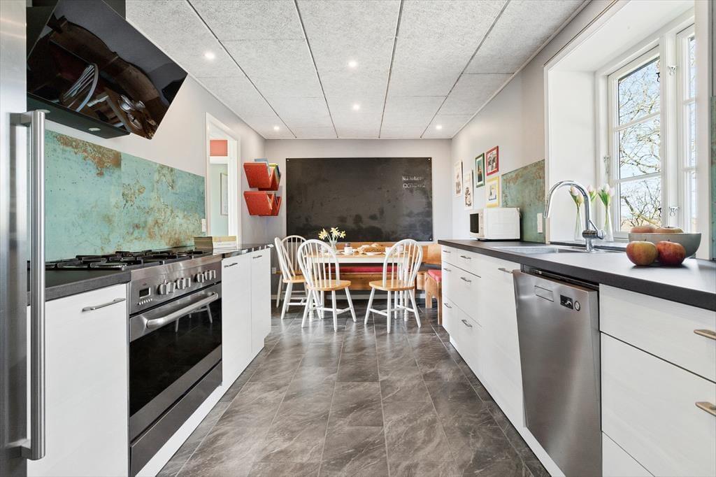 Køkkenet er funktionelt og du kan let tilberede alle måltider her, og samtidig være sammen med dem, der har sat sig til rette ved spisebordet i køkkenet. Her er der igen tænkt på funktionalitet og hygge, hvor I kan være sammen om madlavningen, eller nyde morgenkaffen i køkkenet.