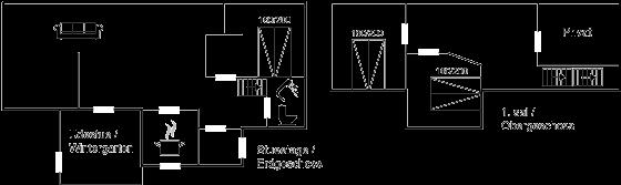 Husets indretning er med to stuer, der ikke er ganske adskilt, men sådan at man kan spise sin frokost i den ene afdeling og sidde og slappe af i den anden del eller se TV. Køkkenet er rummeligt og af nyere dato, så alt fungerer på bedste vis og endda med god plads til at kokkerere. Huset er i to plan med to soveværelser på 1. sal og et soveværelse i stueplan. Da huset jo er bygget i en anden tid, så når loftshøjden under bjælkerne nogle steder kun op til 180 cm.