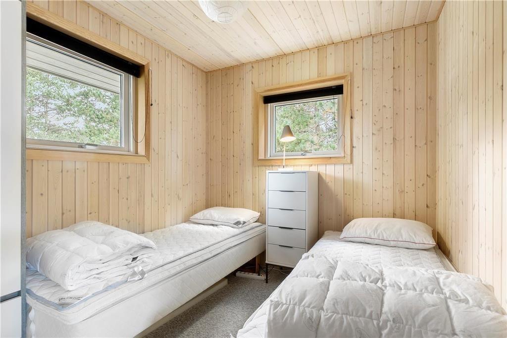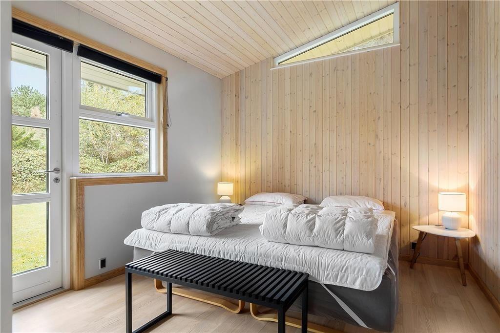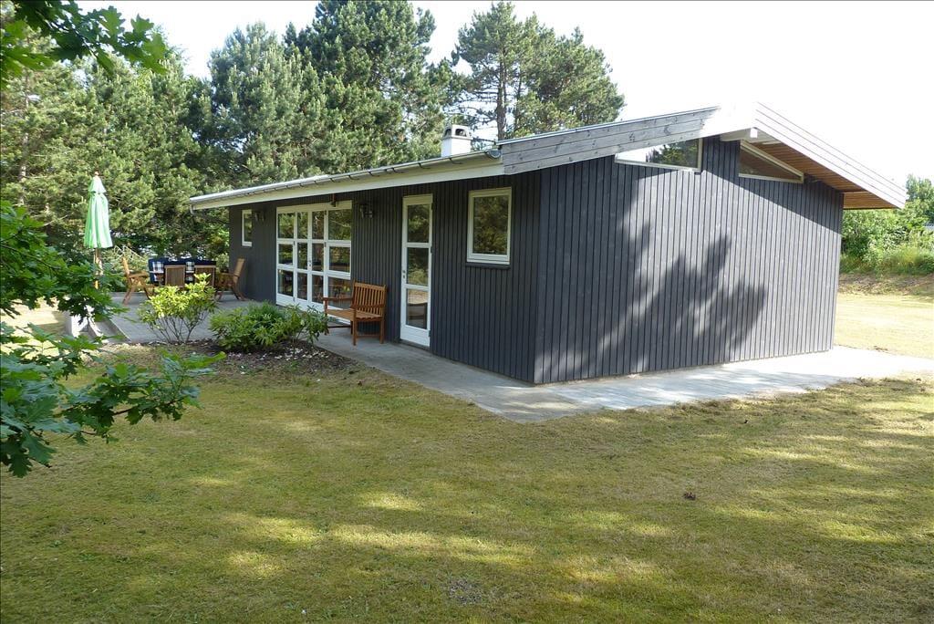 Sommerhuset ligger tilbagetrukket på en dejlig plan grund med et par store træer og har et flot vinduesparti, hvor du fra den åbne stue kan nyde udsigten til haven fra både spisebordet og sofaen. Sommerhuset er lyst indrettet, med et moderne tvist. Mens brændeovnen, der er placeret midt i huset mellem det åbne køkken og stuen, sørger for varmen, kan du finde et spil frem til glæde for hele familien. Er der sommer og sol, så slå dørene op til terrassen og lad solens stråler sende lys og varme ind.