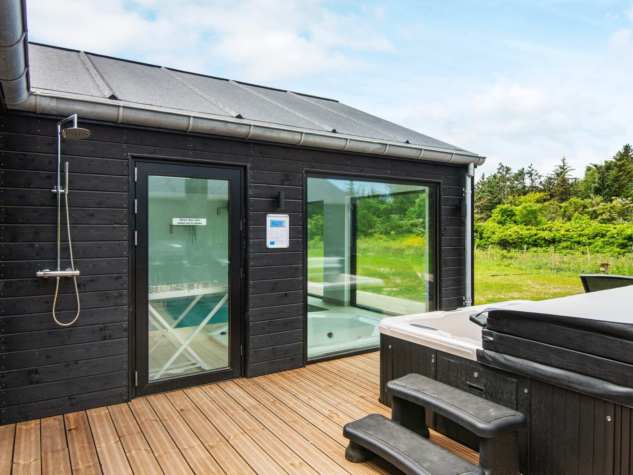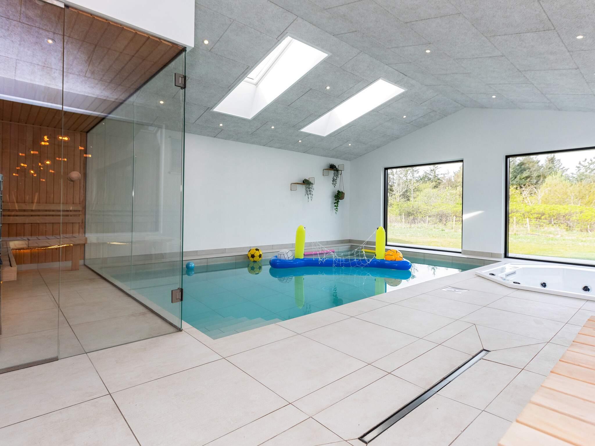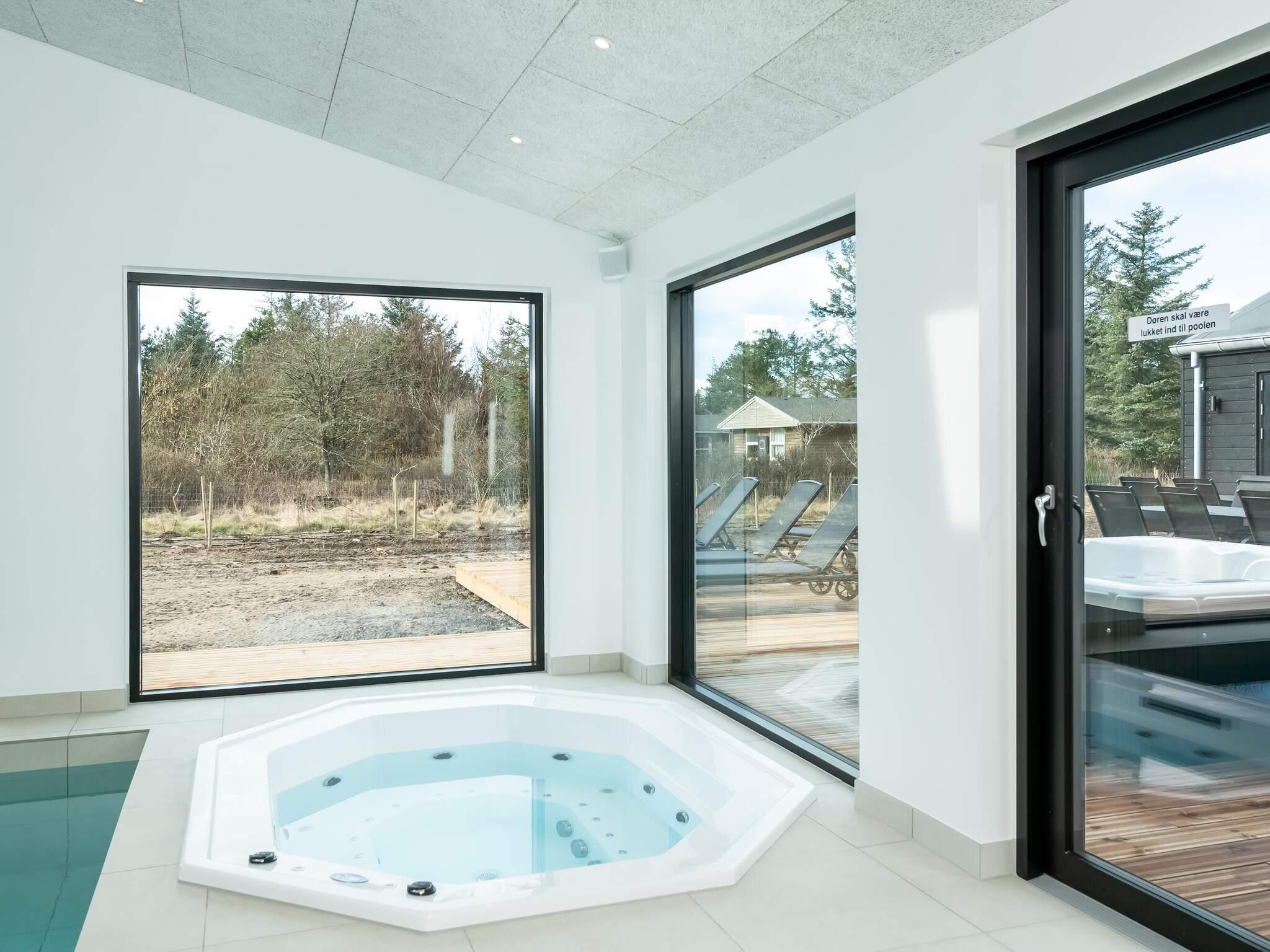 Ved Nr. Lyngby finder du dette sommerhus fra 2021, som byder på masser af luksus og komfort. Her er der lagt stor vægt på detaljen. Der er blandt andet en dejlig indendørs swimmingpool med glasdøre til spisestuen, så man kan sidde afslappet ved bordet, mens børnene plasker rundt i poolen. Wellness-rummet har også et nedsænket spabad og sauna. Udenfor er der et spabad, som kan nydes hele året rundt.
