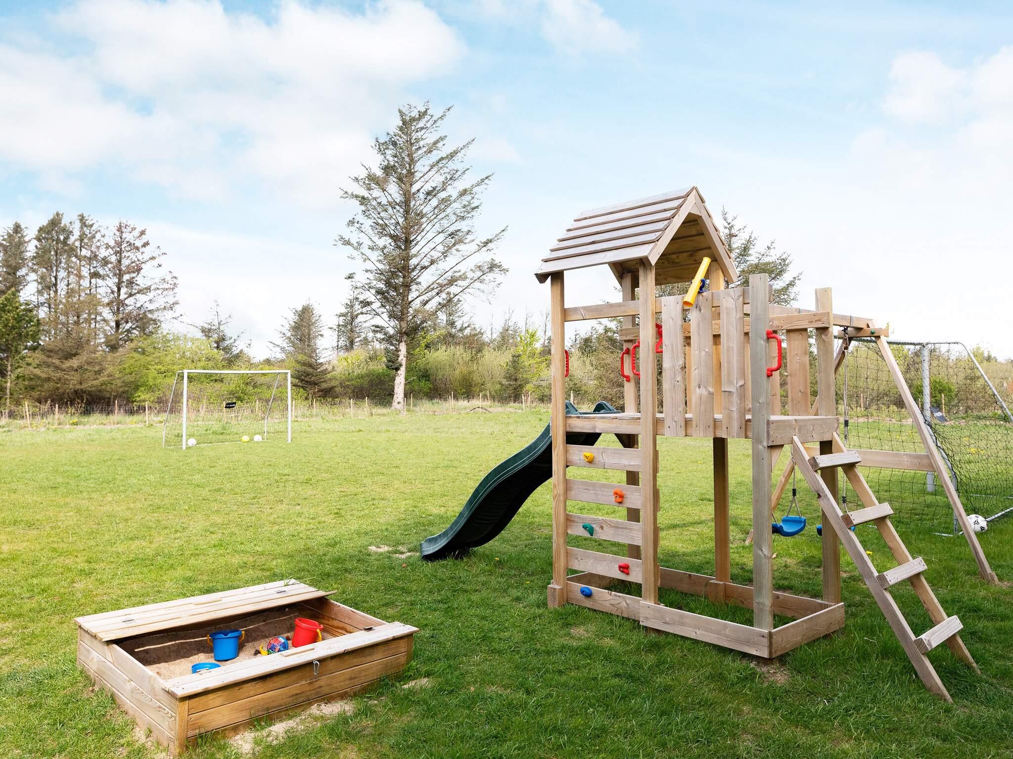 Huset ligger på en stor grund på 3.040 m2 med blandt andet fodboldmål, sandkasse, og gynger, så der er rig mulighed for afslapning, leg og samvær.