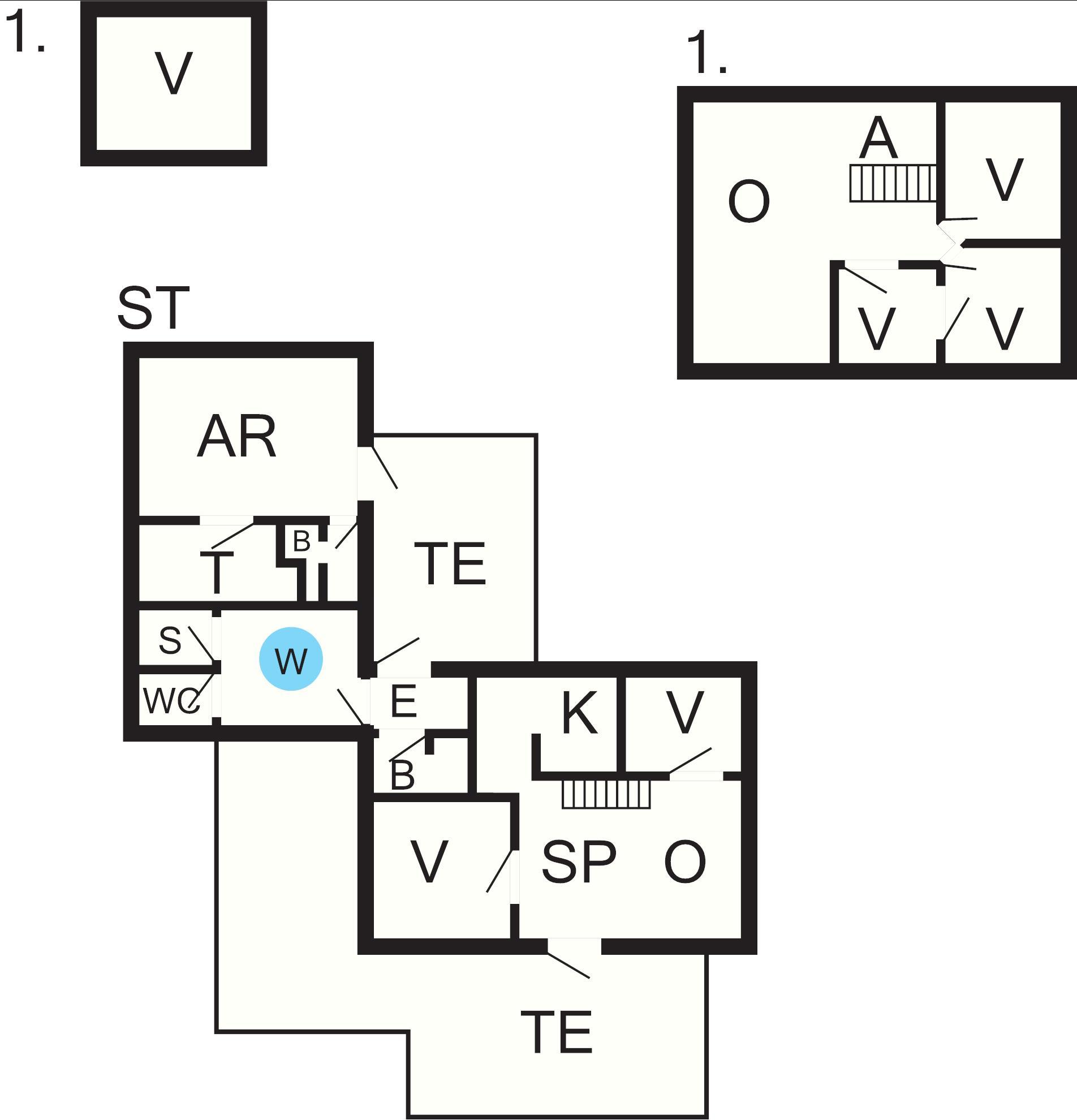 Sommerhusets hjerte, er det åbne opholdsrum/stue/køkken med brændeovn. Her er god plads til madlavning, spil og hyggeligt samvær. Lækkert veludstyret køkken med bl.a. 2 køleskabe på hver 277 l. køl og 107 l. frys. Der er 6 lyse, indbydende soveværelser med gode senge samt alkove på 1.sal med soveplads til 2 personer og 1 tremmeseng.