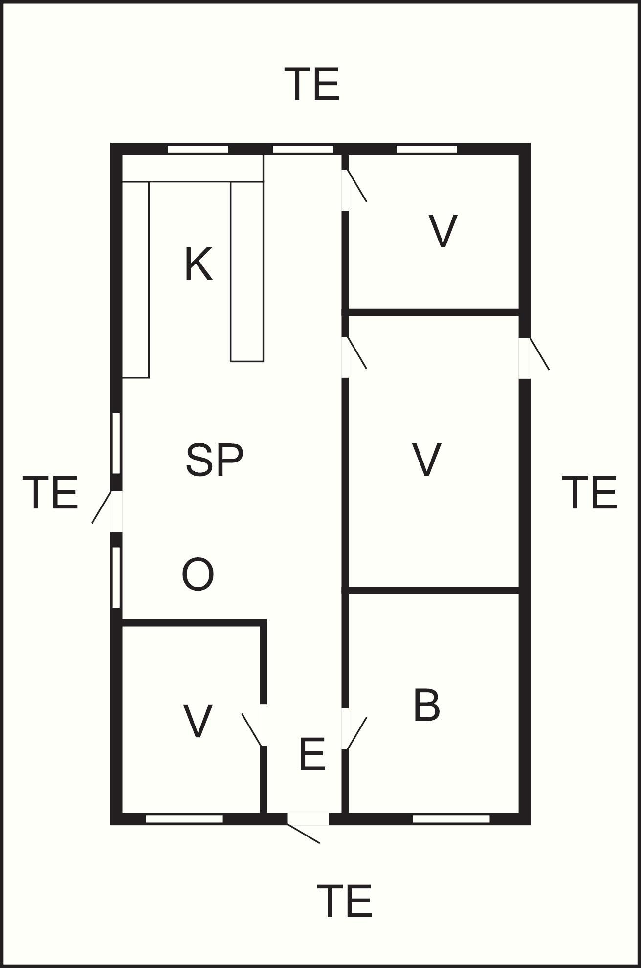 3 Soveværelser: (1DS)+(1DS)+(1DS), barneseng