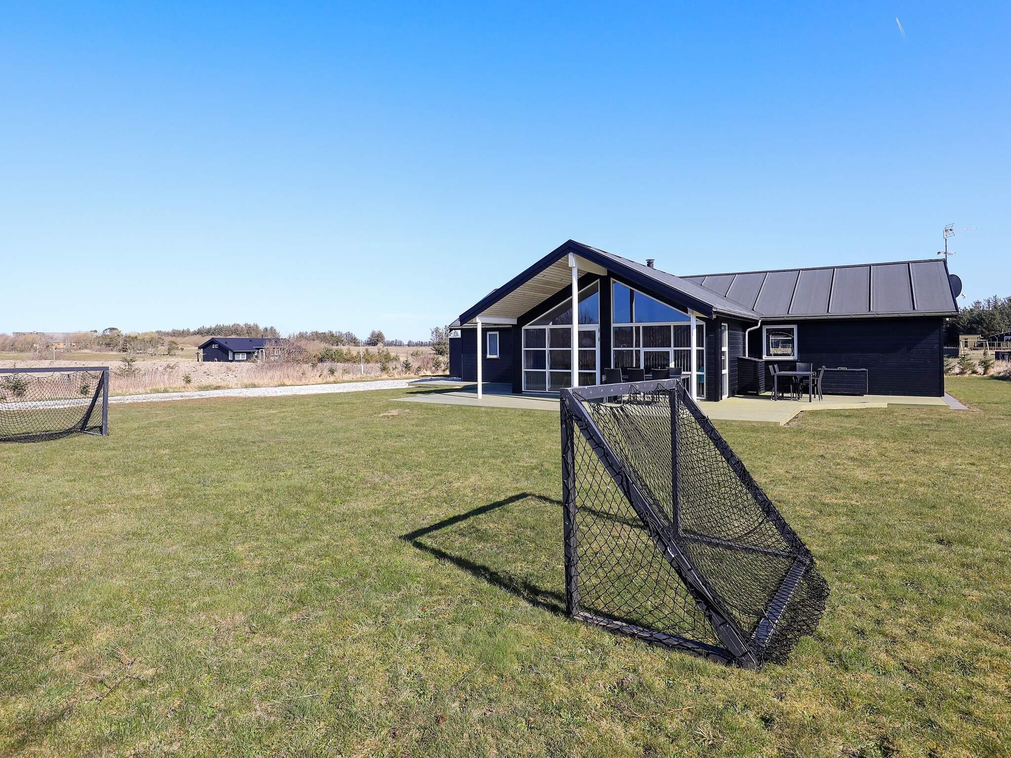 Lyst og rummeligt aktivitetshus beliggende ved det lille fiskerleje Nr. Lyngby midt imellem Løkken og Lønstrup. Både i opholdsstuen og aktivitetsrummet er der tv, dvd-afspiller og gratis, ubegrænset internet. Huset er indrettet med aktivitetsrum med bordtennis, billard, PlayStation3 og badeværelse med forsænket 5-personers spabad og sauna, stor stue i åben forbindelse med køkkenet, fire soveværelser og hems. På hemsen er der et lille tv med dvd, ikke tilsluttet parabolantennen. De fire soverum er placeret med to i hver sin afdeling af huset, hvilket gør det velegnet til to familier, som ønsker at holde ferie sammen. Huset har både brændeovn og luft-til-luft varmepumpe. Desuden udnyttes solens energi fuldt ud på grund af de mange store vinduespartier, der samtidig gør huset lyst og behageligt at opholde sig i. Indretningen er moderne og smagfuld i meget høj kvalitet og med hovedvægten lagt på hygge og afslapning. Grunden er en stor, åben naturgrund med gode muligheder for boldspil og leg foruden naturligvis solbadning om dagen og aftenhygge omkring grillen. Lille overdækket og stor, åben terrasse. Udlejes ikke til ungdomsgrupper.