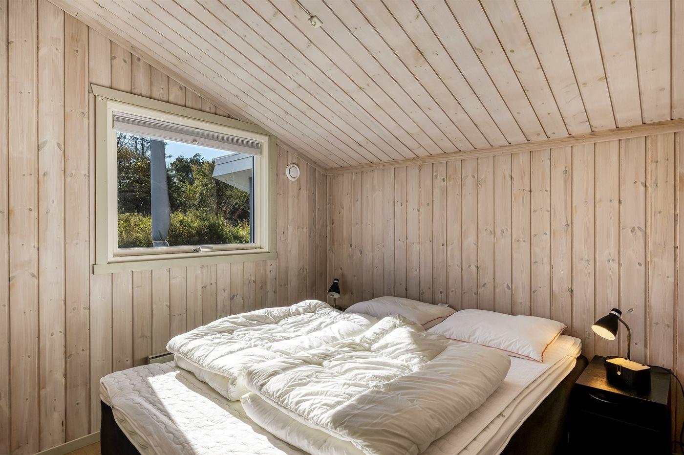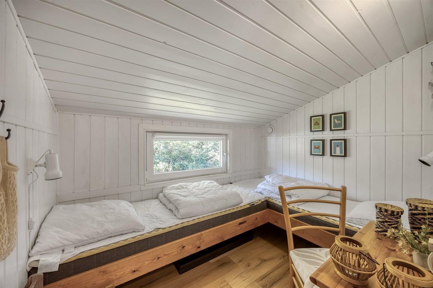 Der er i alt 3 soveværelser. Sovepladserne fordeler sig på: 4 sovepladser i dobbeltsenge. 2 sovepladser i enkeltsenge.