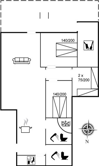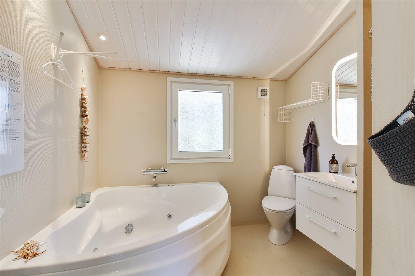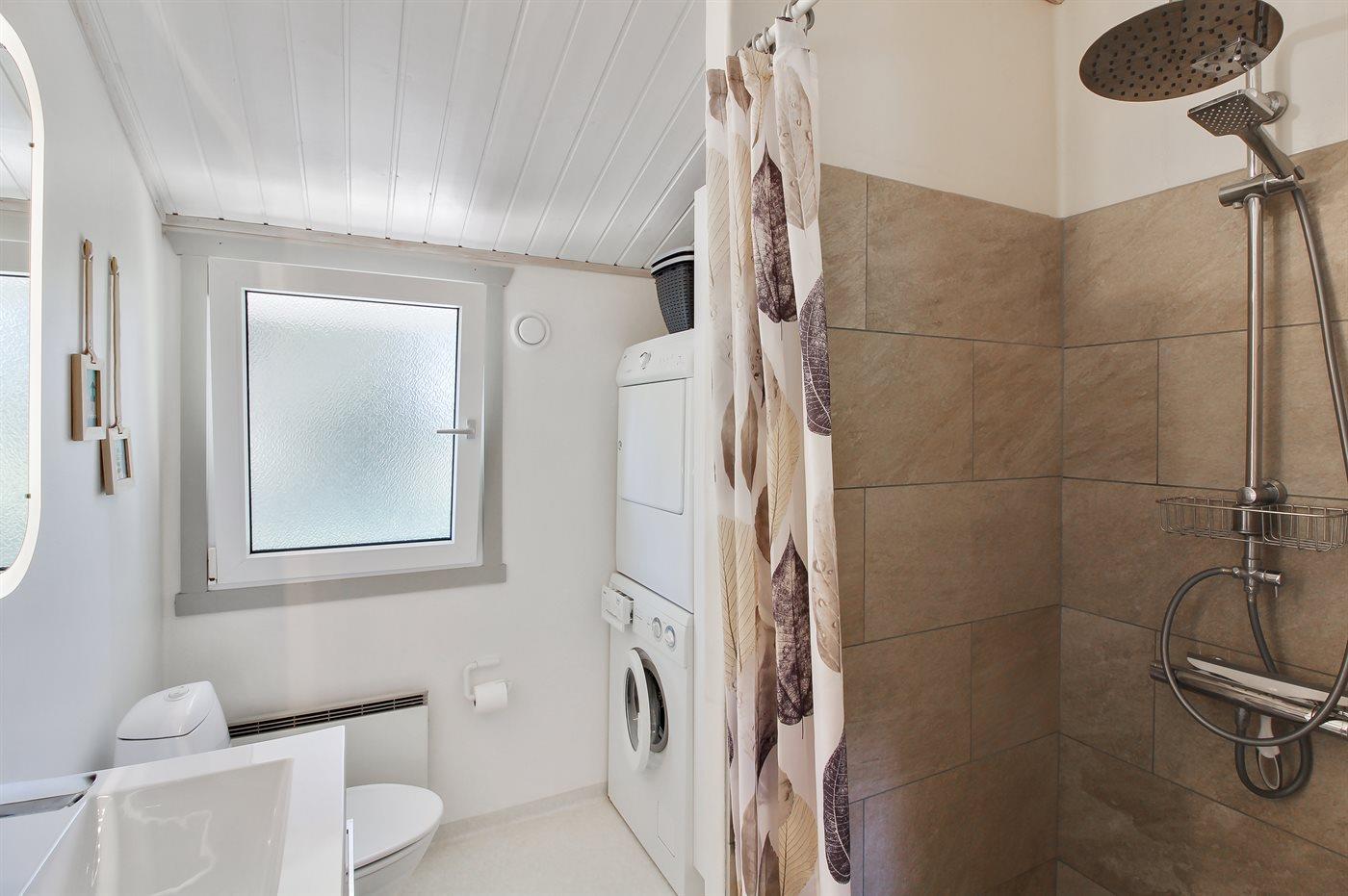 Der er 2 badeværelser med bruseniche og 2 toiletter I saunaen er der mulighed for afslapning.
