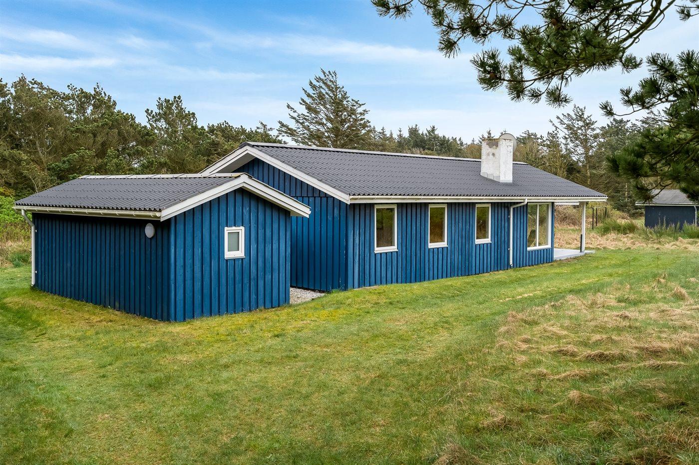 På en stor, ugenert grund nær Vesterhavet og skøn badestrand ligger dette sommerhus på en rolig og lukket vej i et naturskønt område.
