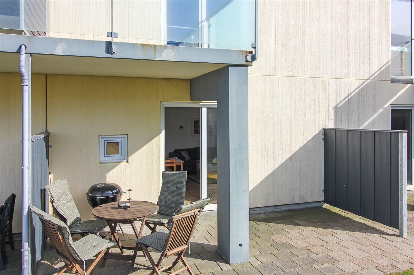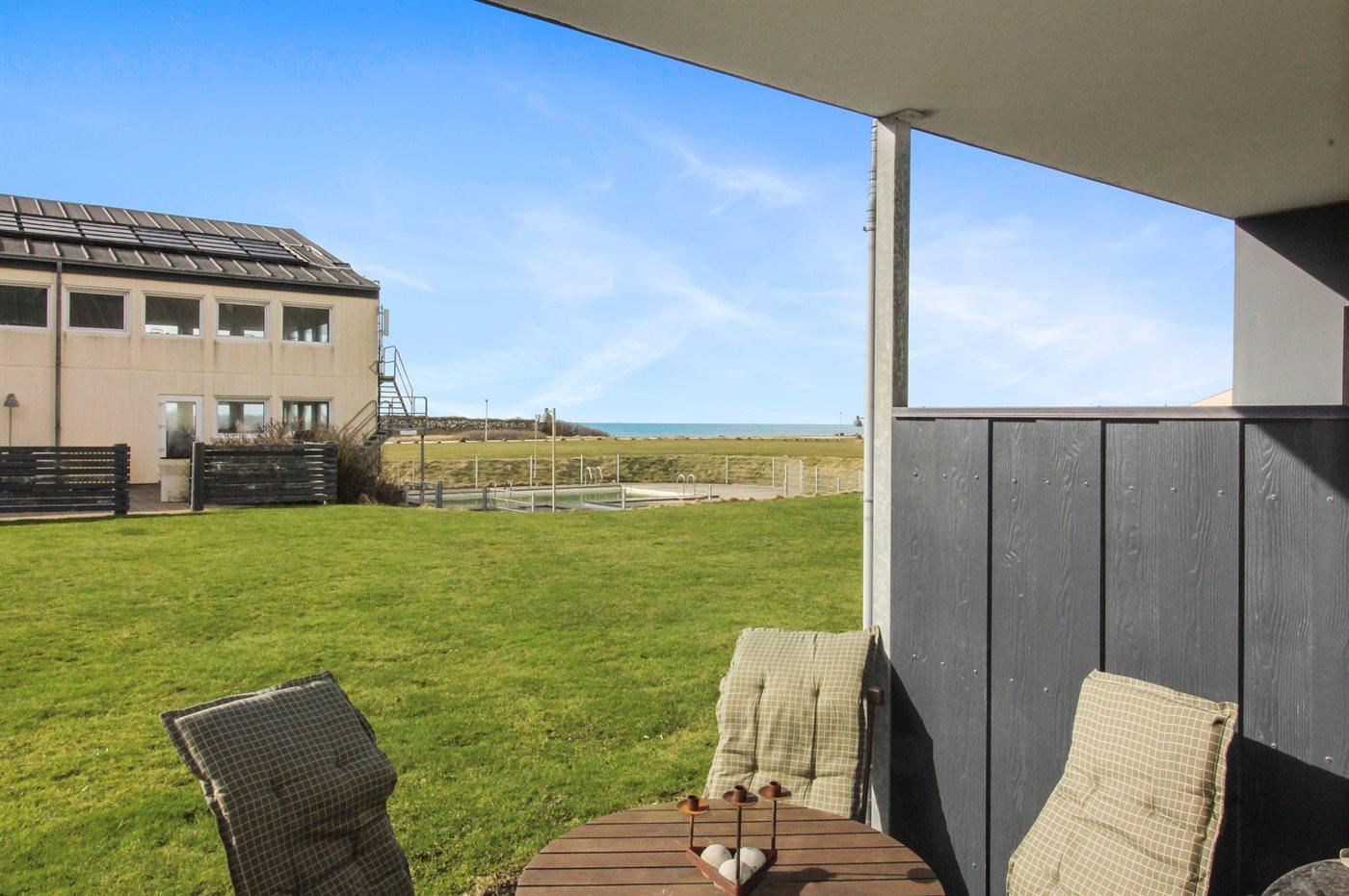 Ferielejlighed i Nr. Lyngby, et dejligt sommerhusområde ved vestkysten mellem Løkken og Lønstrup, som er kendt for sin stejle kyst og en dejlig sandstrand. Til Nr. Lyngby Feriecenter hører en fælles udendørs swimmingpool samt en børnepool, som ligger på den store fælles græsplæne, og er tilgængelig fra uge 26-34. På de omkringliggende fællesarealer er der en god legeplads til børnene. I fælleshuset er der gratis adgang til vaskemaskiner og tørretumbler. Denne lejlighed ligger i stueetagen med udsigt ud over vandet og kysten fra grunden.