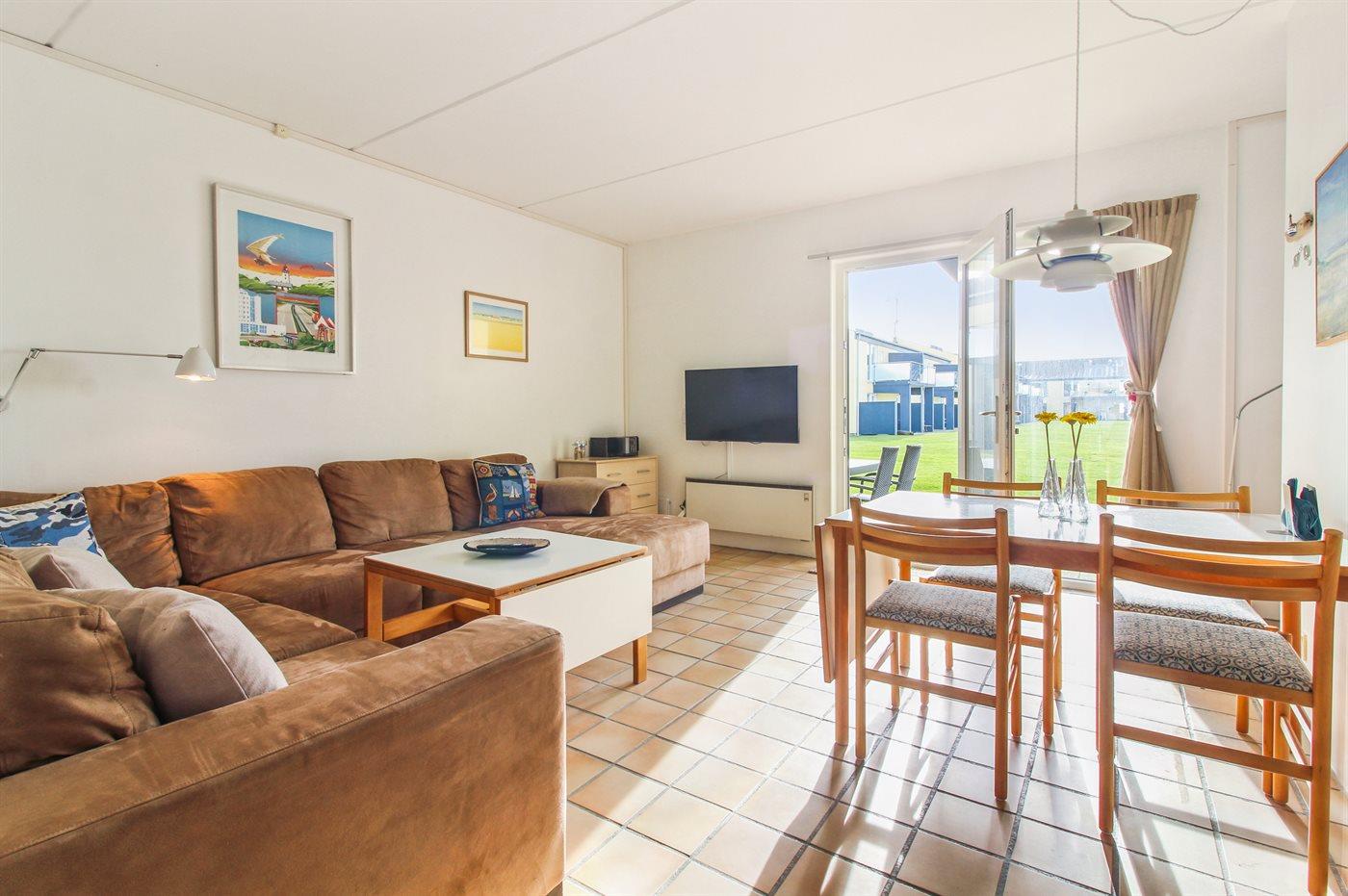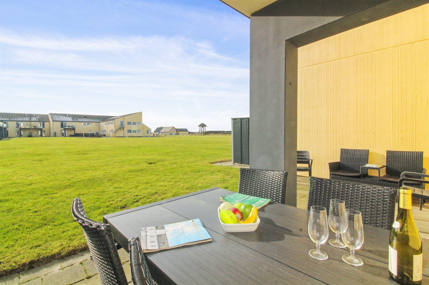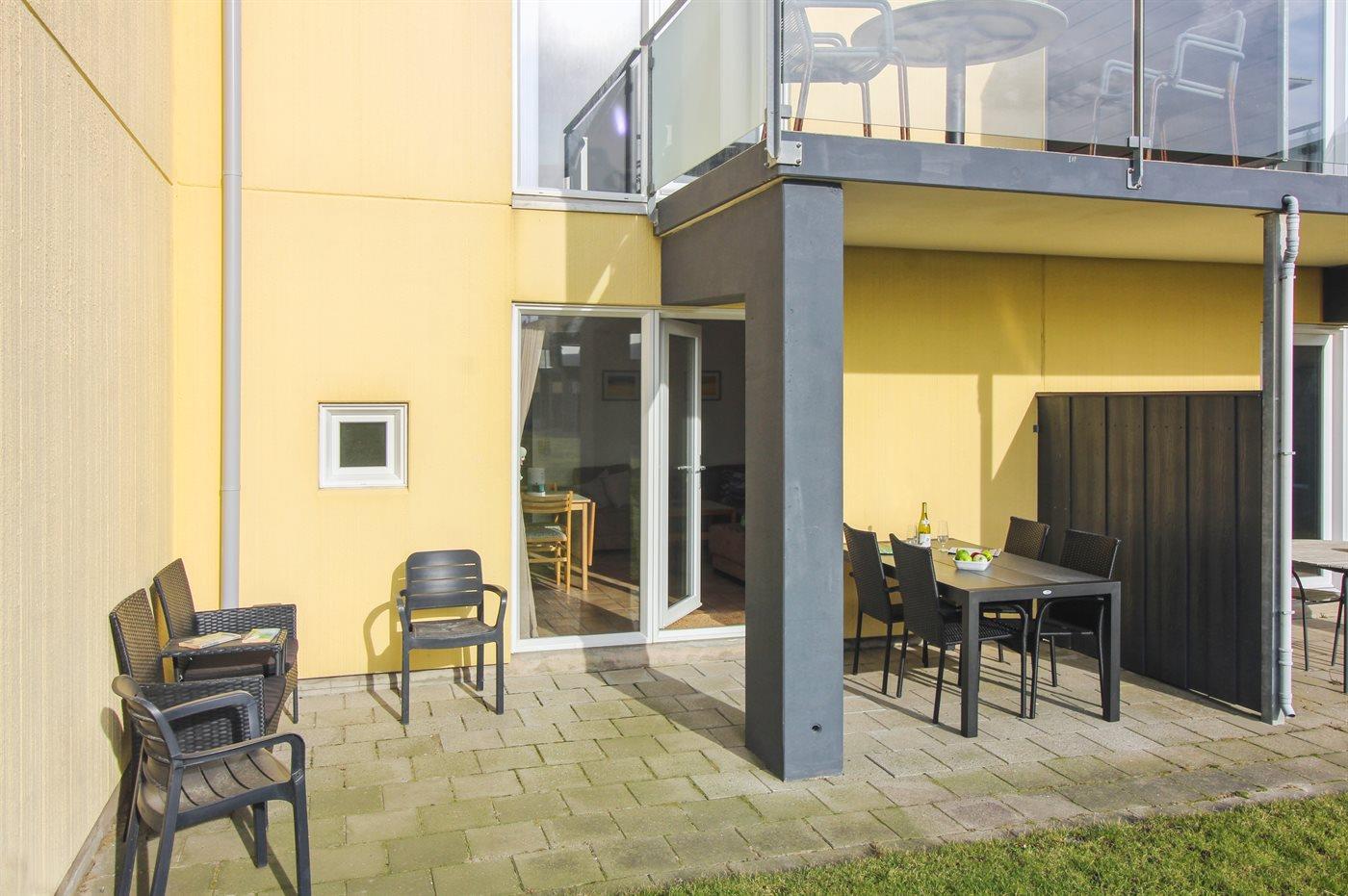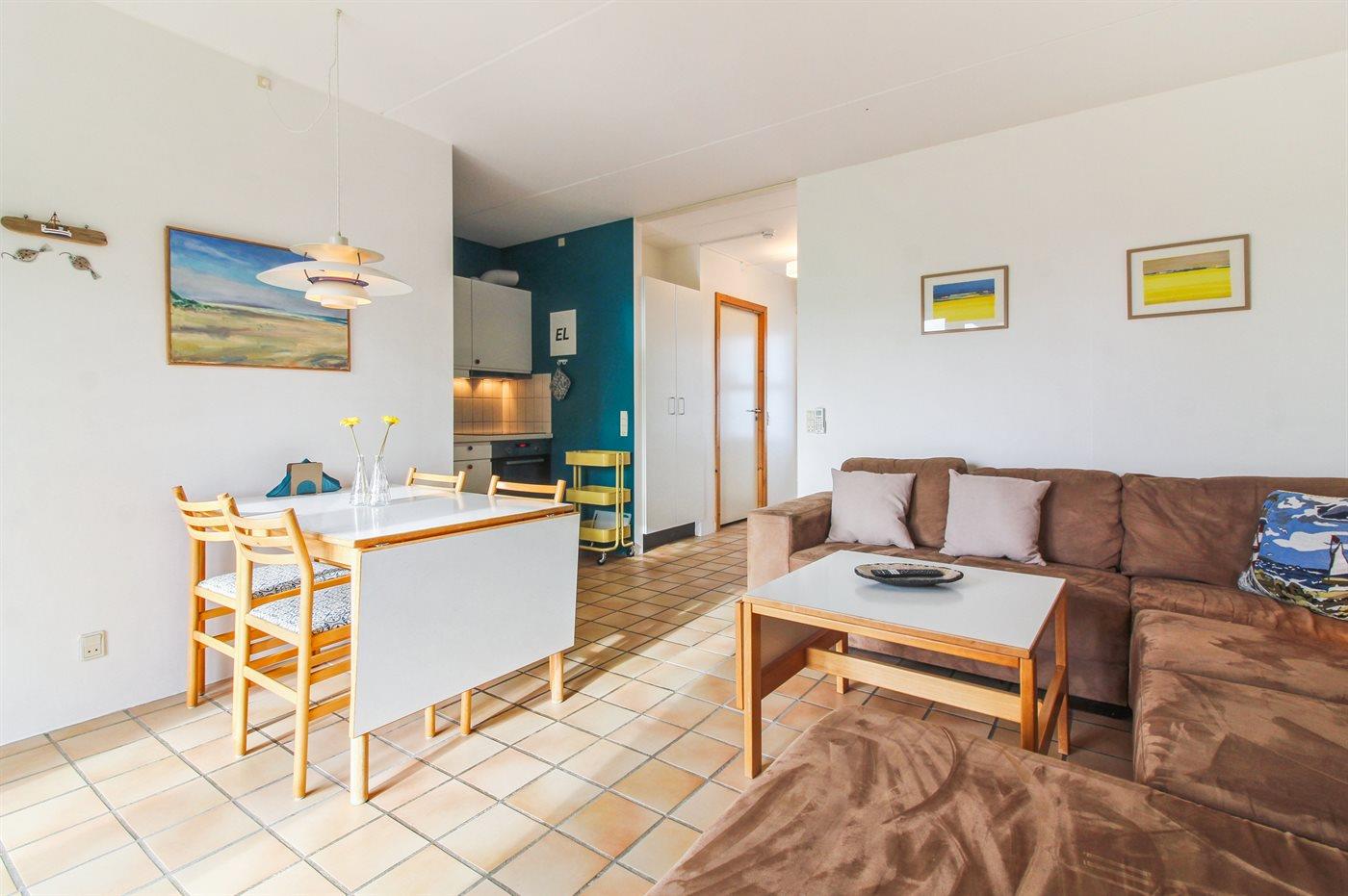 Lejligheden ligger i stueplan og har en skøn terrasse, som er delvist overdækket. Herfra kan man nyde udsigten over vandet og kysten. Lejligheden står flot og indbydende, og her er alle muligheder for en god og afslappende ferie - på alle tider af året.