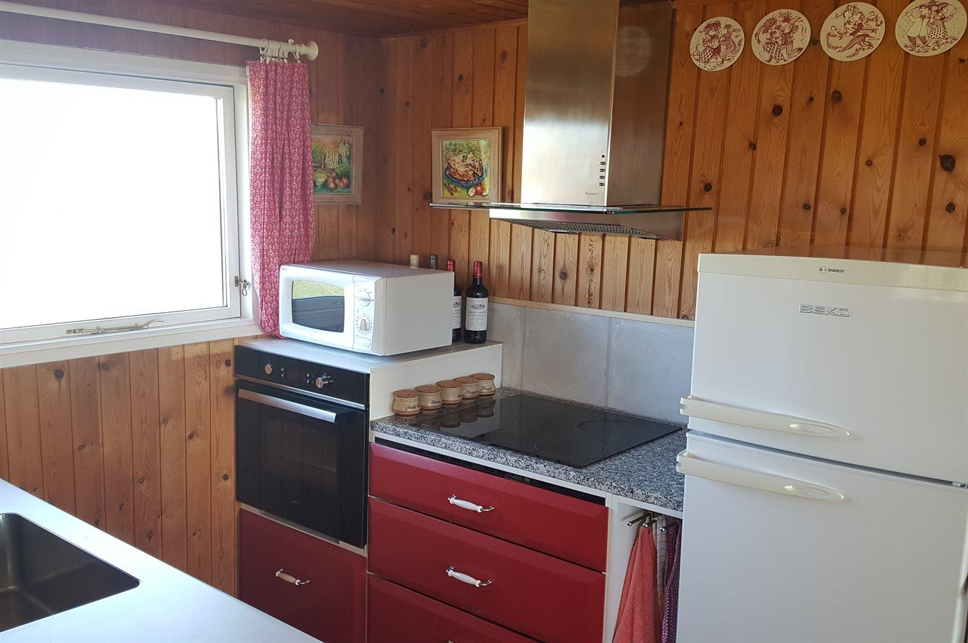 Køkkenet er udstyret med 1 køleskab. Der er 4 keramiske kogeplader, varmluftovn, mikrobølgeovn samt opvaskemaskine.