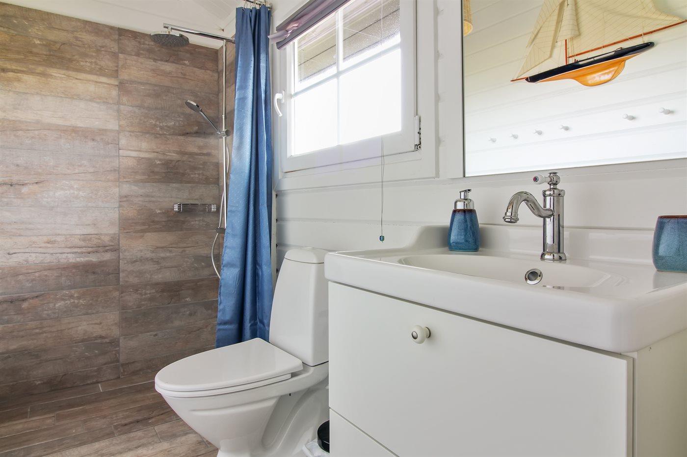 Der er 1 badeværelse med bruseniche og 1 toilet.. Der er gulvvarme på 1 badeværelse.