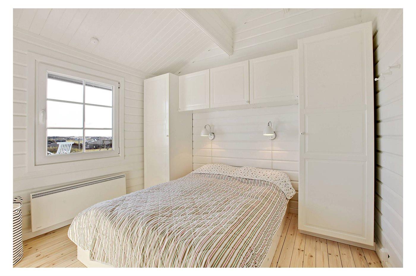 Der er i alt 3 soveværelser. Sovepladserne fordeler sig på: 2 sovepladser i dobbeltseng. 2 sovepladser i køjeseng. 2 sovepladser i sovesofa (dobbelt). Derudover er der 1 stk. barneseng.