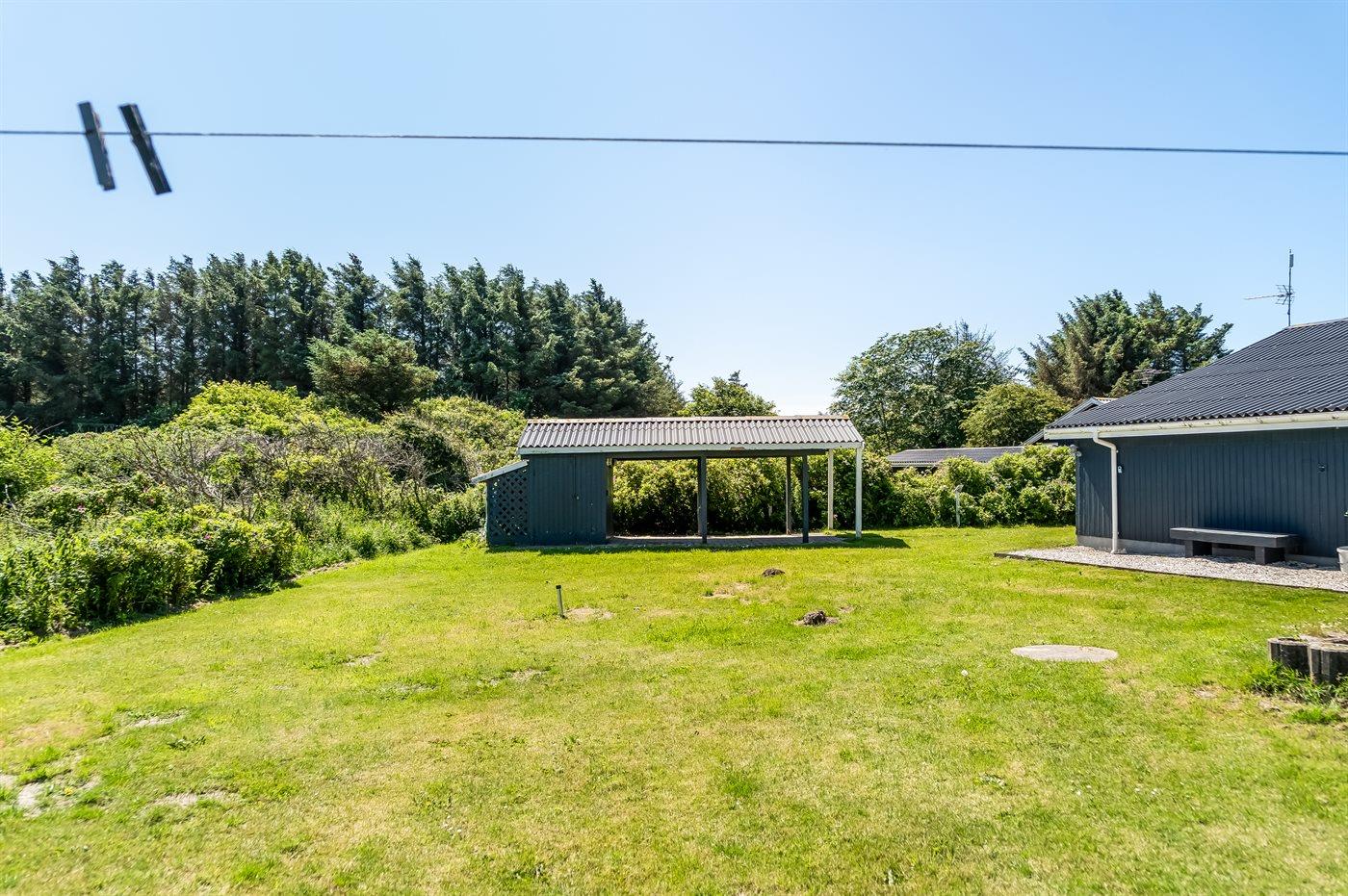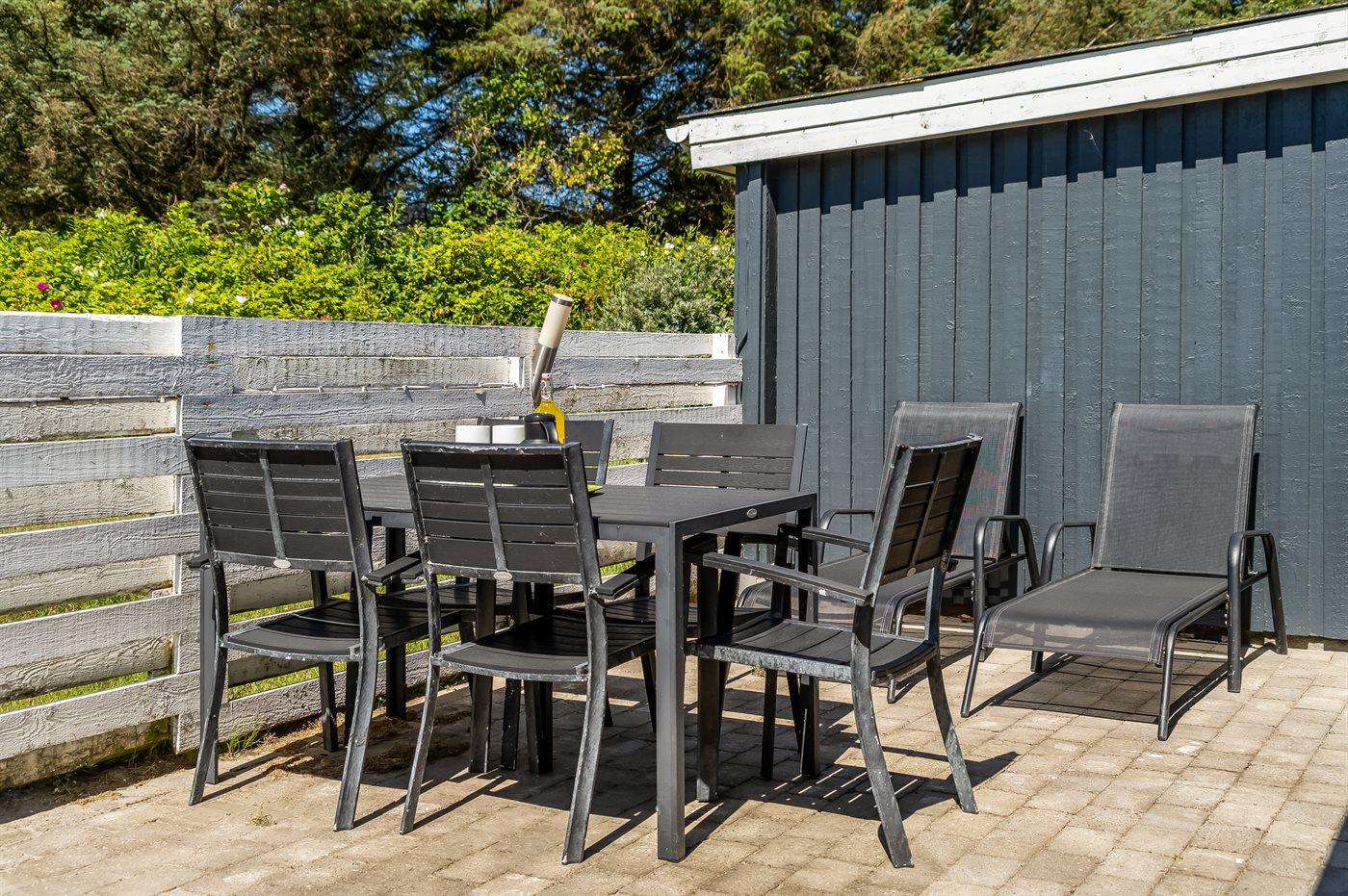 Ferieboligen er beliggende på en 1259 m² stor naturgrund. Der er 350 m til havet. Nærmeste forretning er beliggende i en afstand af 6000 m. Til ferieboligen hører 110 m² terrasseareal. Desuden er der 20 m² overdækket terrasse. Der er redskabsrum. Gynge. Sandkasse. Der er carport til rådighed. Parkering ved ferieboligen.