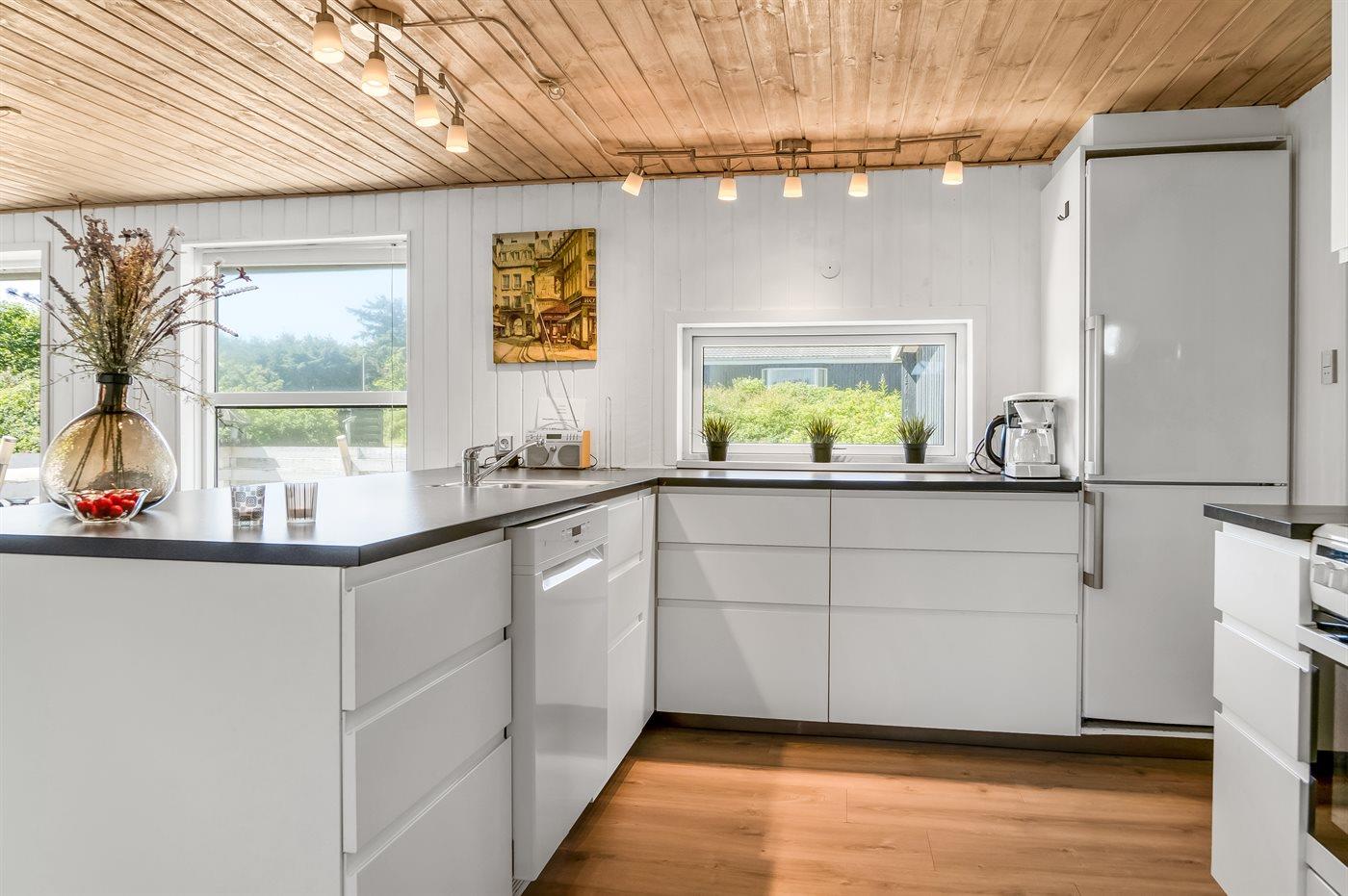 Køkkenet er udstyret med 1 køleskab. Der er 4 keramiske kogeplader, varmluftovn, mikrobølgeovn, Airfryer samt opvaskemaskine.