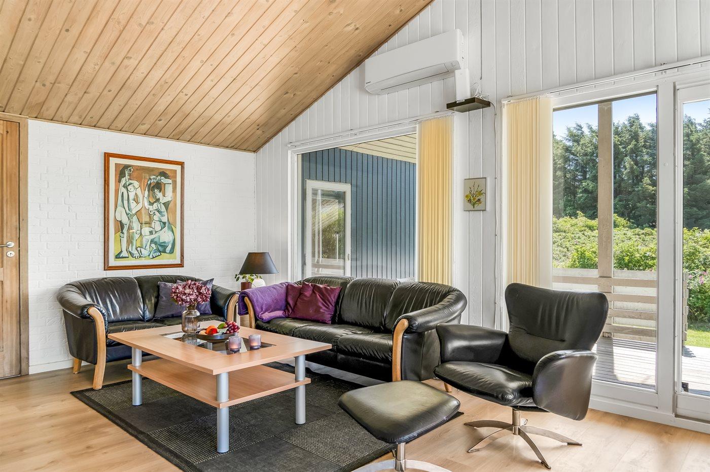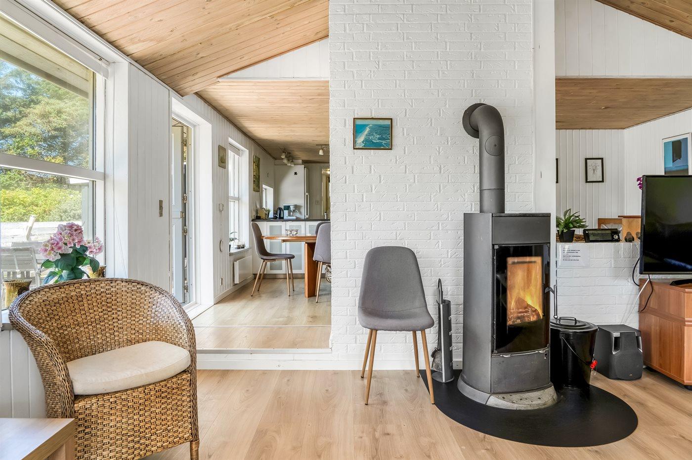 Skønt sommerhus nær Nr. Lyngbys kystskrænter med sauna, brændeovn og stor terrasse.