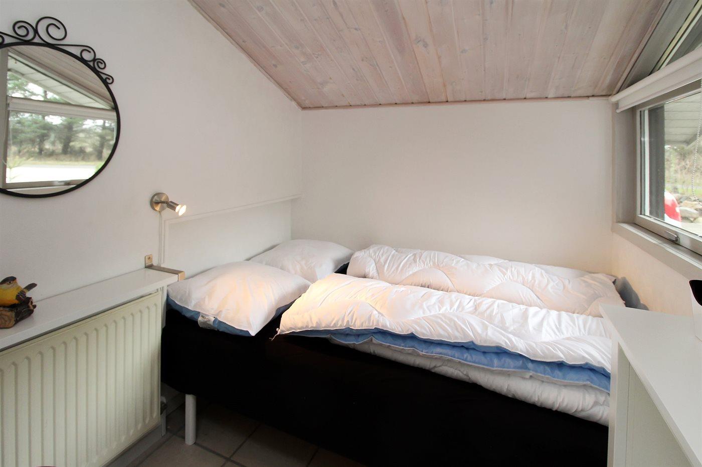 Der er i alt 4 soveværelser. Sovepladserne fordeler sig på: 6 sovepladser i dobbeltsenge. 1 soveplads i enkeltseng.- 2 af disse sovepladser befinder sig i et anneks. Derudover er der 1 stk. barneseng.