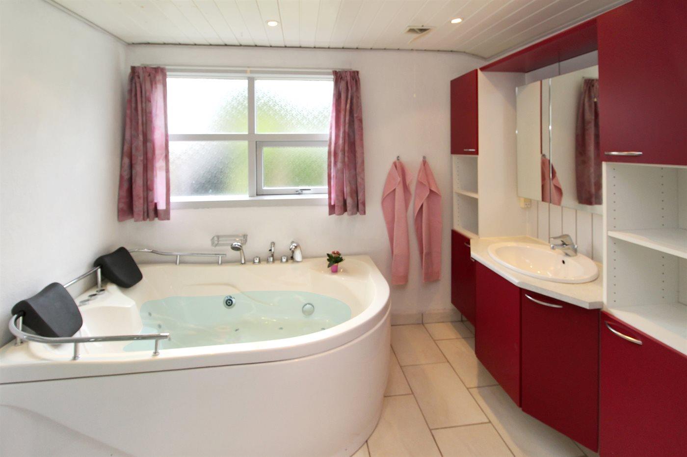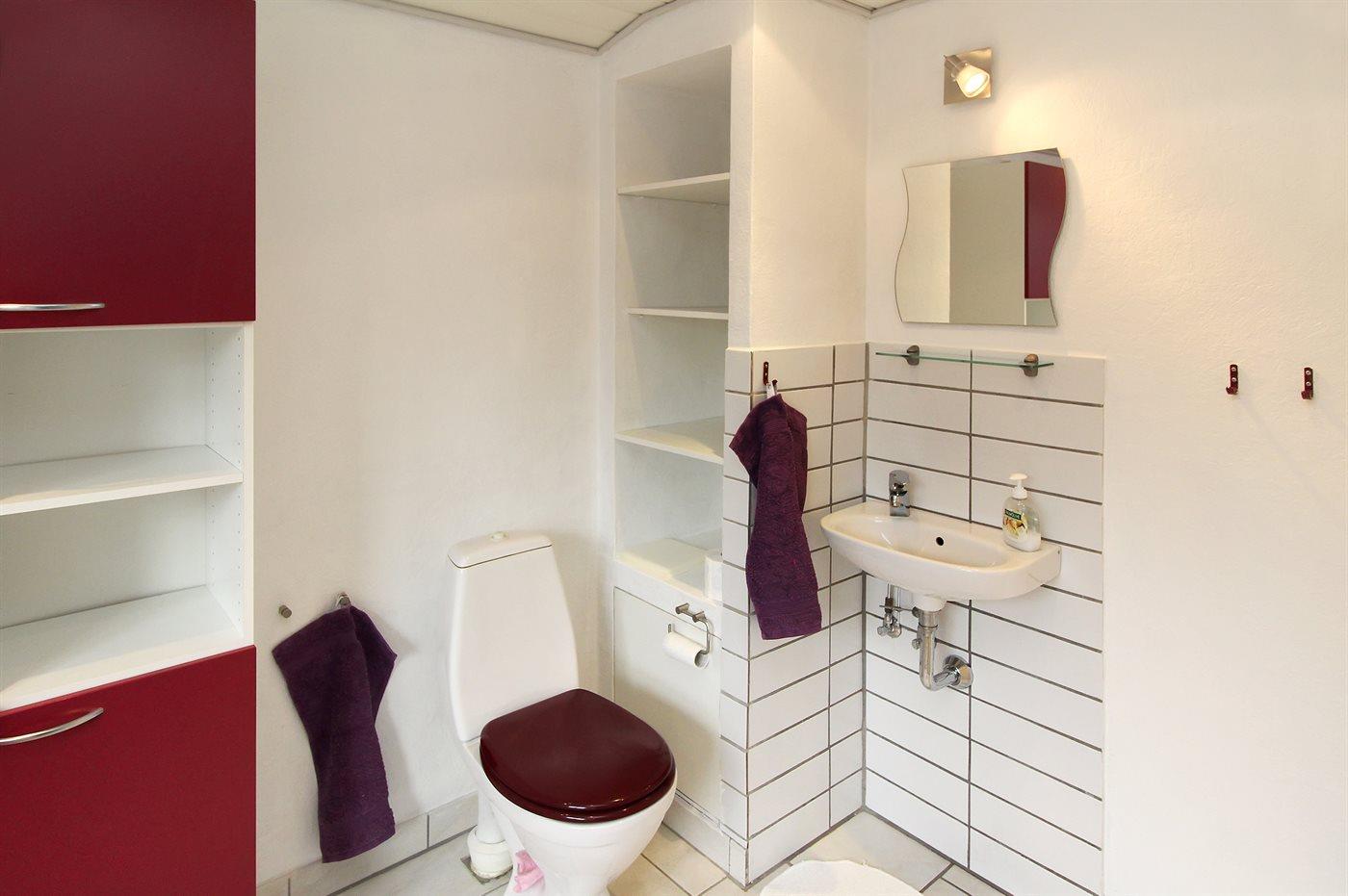 Der er 1 badeværelse med bruseniche og 2 toiletter, heraf 1 gæstetoilet. Der er gulvvarme på 1 badeværelse. Der er gulvvarme på gæstetoilettet.