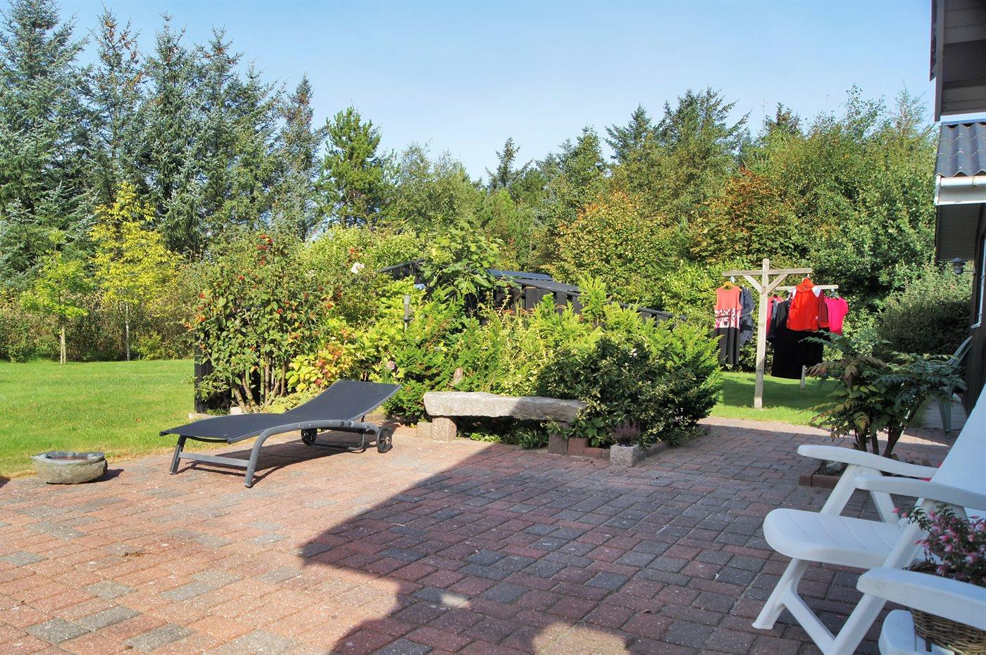 Ferieboligen er beliggende på en 2511 m² stor naturgrund. Grunden er indhegnet. Der er 850 m til havet. Nærmeste forretning er beliggende i en afstand af 5000 m. Til ferieboligen hører 100 m² terrasseareal. Ligeledes er der adgang til udestue. Der er gulvvarme i udestuen. Der er redskabsrum. Sandkasse. Der er carport til rådighed. Parkering ved ferieboligen.