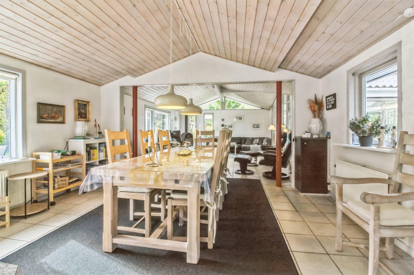 Sommerhuset egner sig til 7 personer samt 1 barn op til 3 år. 2 af sovepladserne er kun egnet til større børn (4-11 år). Ferieboligen er på 127 m² og er bygget i 1968. I 2001 gennemgik ferieboligen en renovering. I 2010 gennemgik ferieboligen en delvis renovering. Det er tilladt at medbringe 1 husdyr. Ferieboligen er udstyret med energibesparende luft til vand varmepumpe. Der er gulvvarme i stuen. Der er gulvvarme i alrummet. Ferieboligen har vaskemaskine. Frysekapacitet på 200 liter. Der er desuden brændeovn. Til de små er der 1 stk. barnestol.