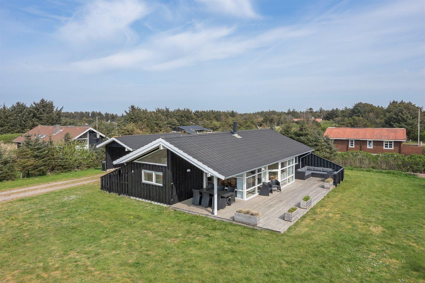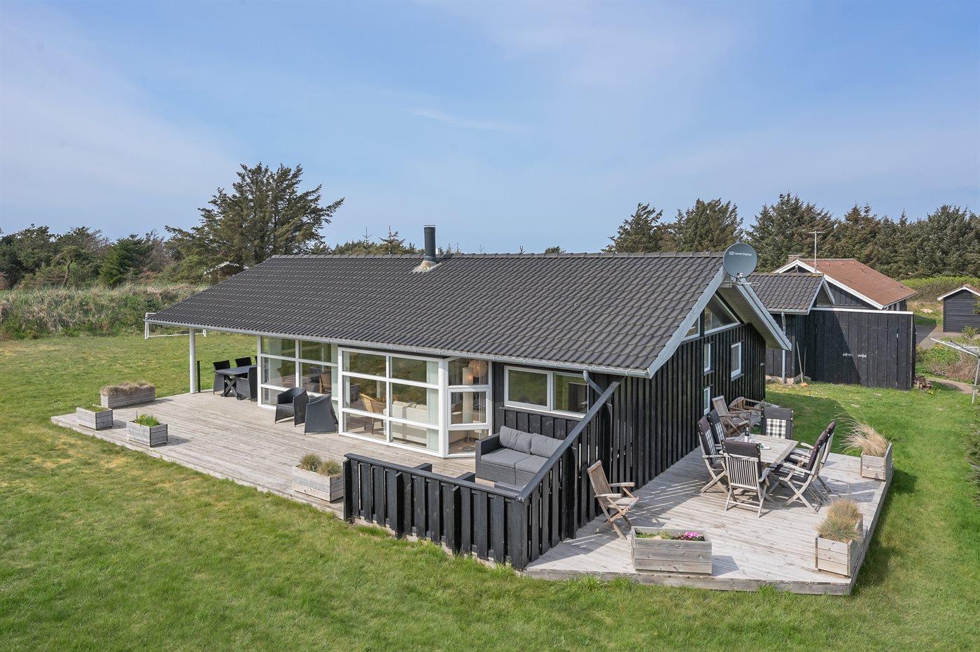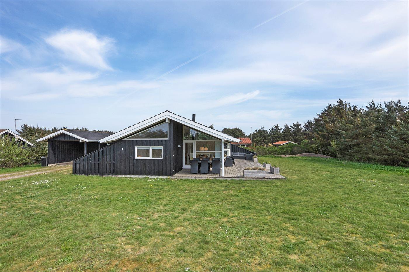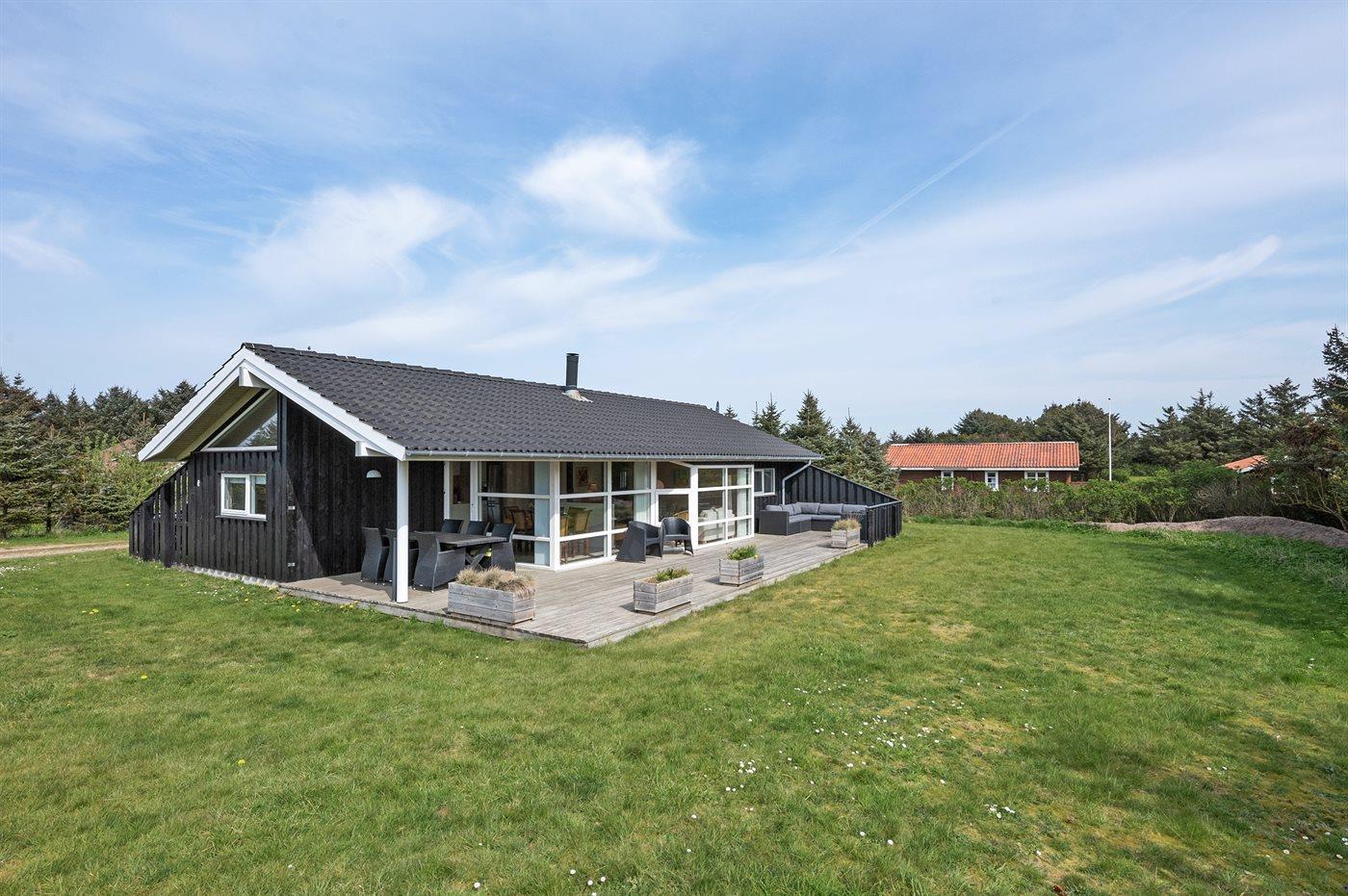 Ferieboligen er beliggende på en 1480 m² stor naturgrund. Der er 320 m til havet. Nærmeste forretning er beliggende i en afstand af 5000 m. Til ferieboligen hører 80 m² terrasseareal. Desuden er der 15 m² overdækket terrasse. Der er redskabsrum. Fodboldmål. Bålsted. Der er carport til rådighed. Parkering ved ferieboligen.