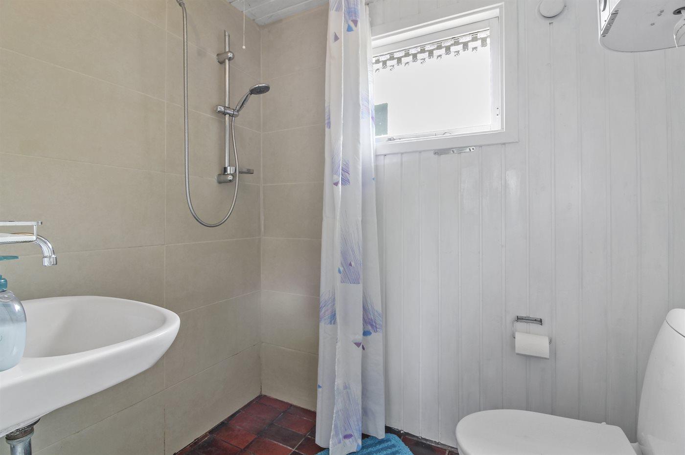 Der er 1 badeværelse med bruser og 1 toilet.