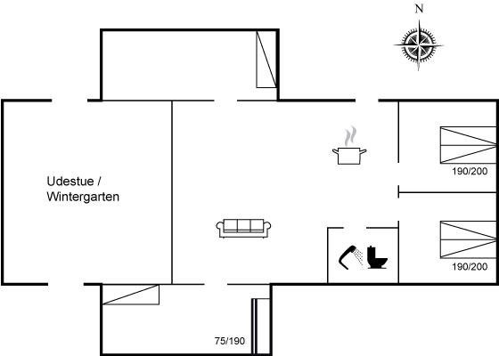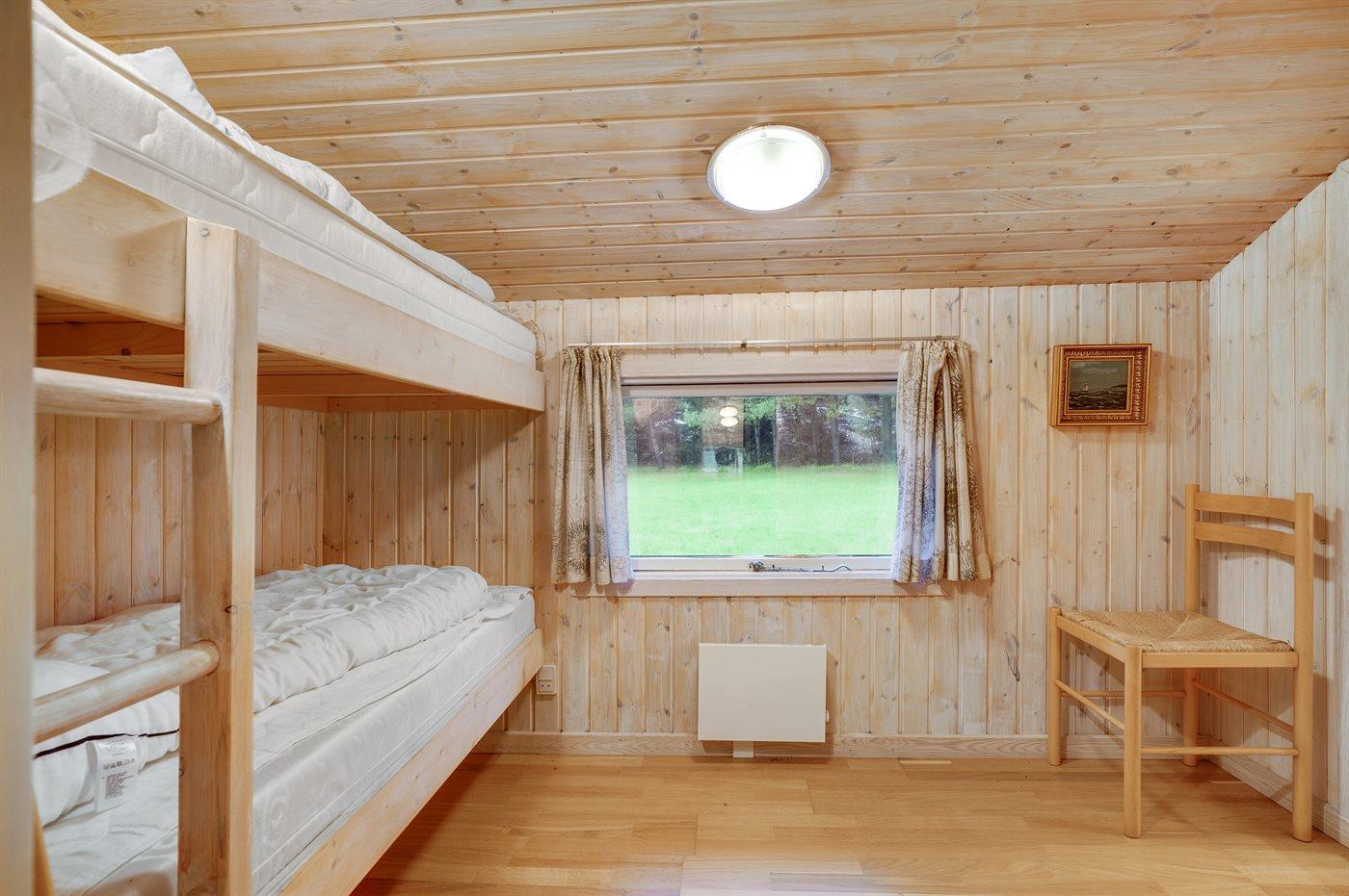 Der er i alt 3 soveværelser. Sovepladserne fordeler sig på: 4 sovepladser i dobbeltsenge. 2 sovepladser i køjeseng. Derudover er der 1 stk. barneseng.