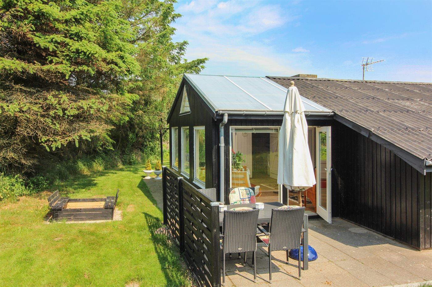 Hyggeligt sommerhus i rolige Nr. Lyngby nær Vesterhavet, med terrasse, udestue og plads til husdyr.