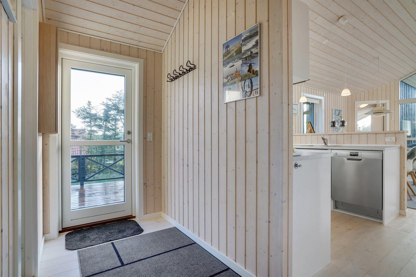 Ferieboligen er beliggende på en 2141 m² stor naturgrund. Der er 300 m til havet. Nærmeste forretning er beliggende i en afstand af 4500 m. Til ferieboligen hører 87 m² terrasseareal. Desuden er der 13 m² overdækket terrasse. Sandkasse. Parkering ved ferieboligen.