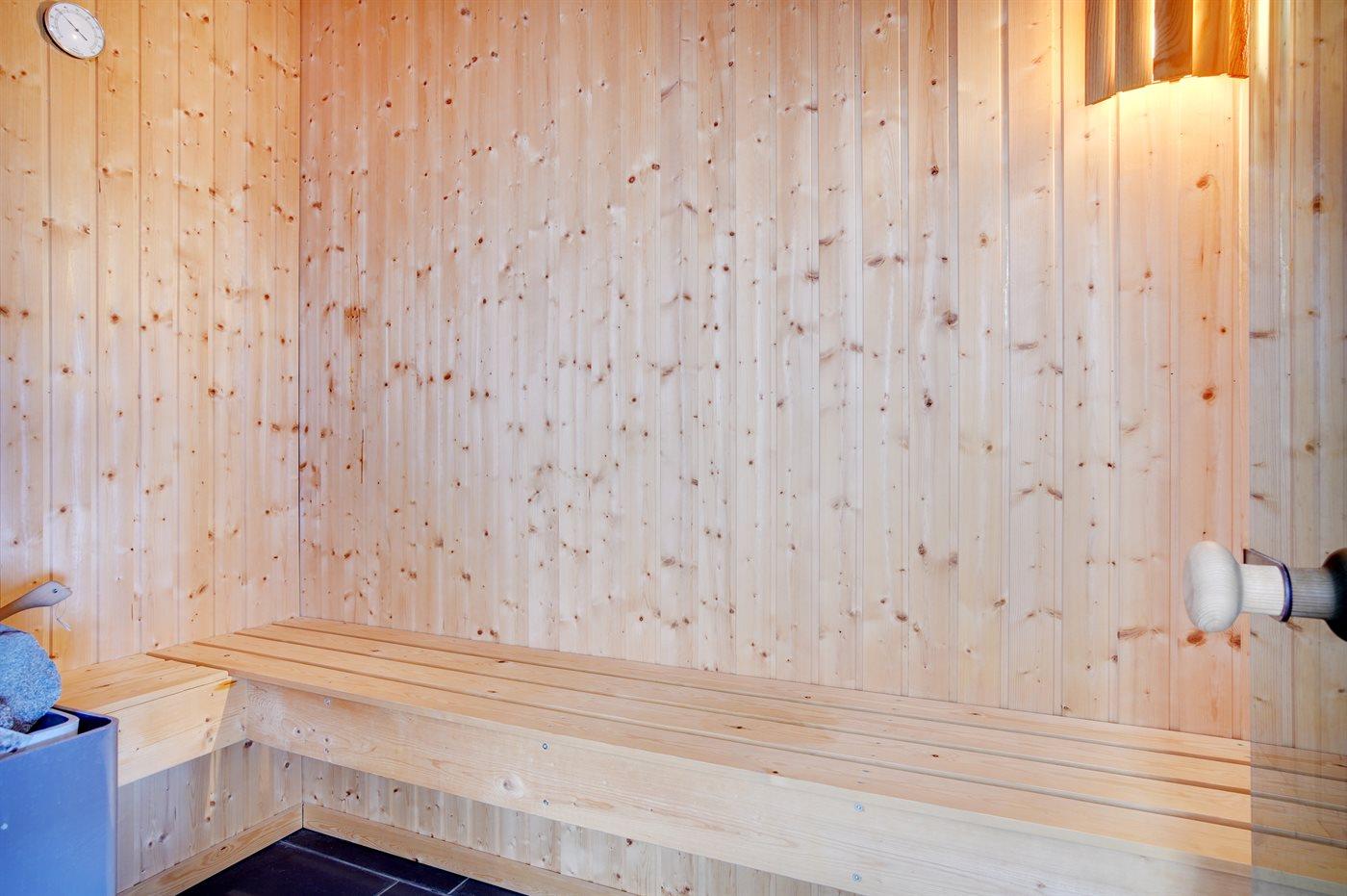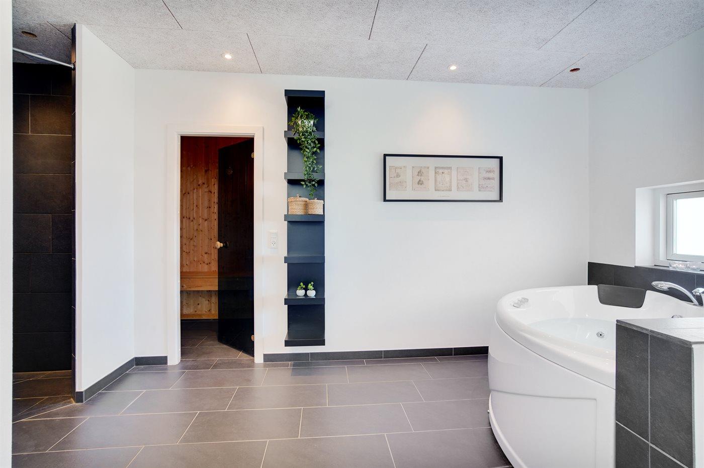 Der er 2 badeværelser med bruseniche og 2 toiletter. Der er gulvvarme på 2 badeværelser. I saunaen er der mulighed for afslapning.