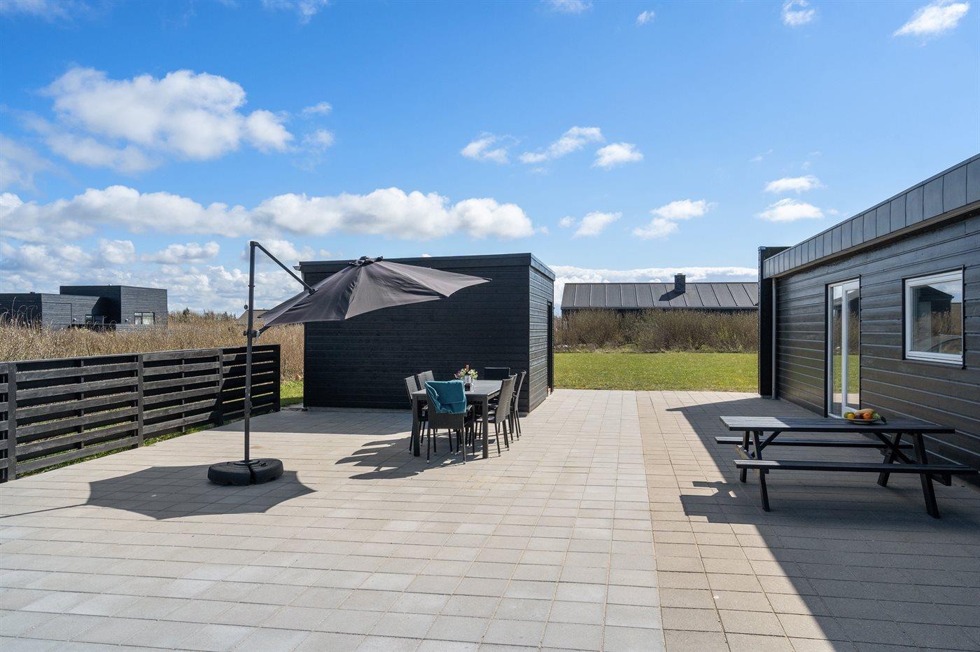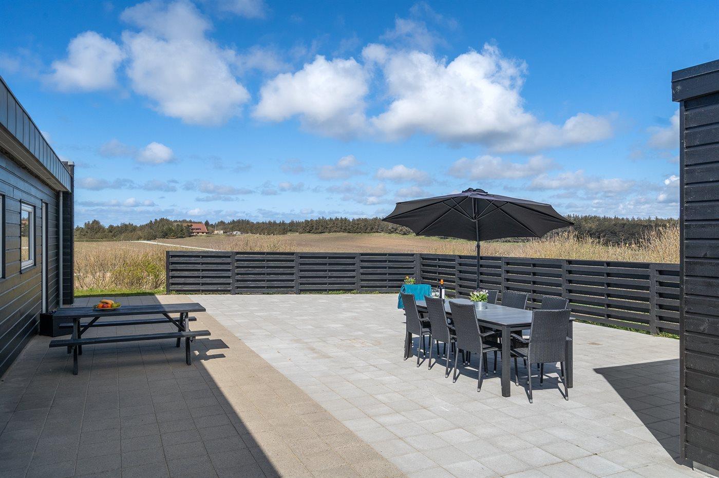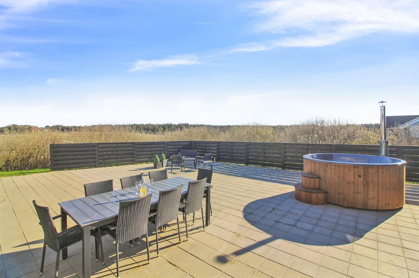 Ferieboligen er beliggende på en 1800 m² stor naturgrund. Der er 700 m til havet. Nærmeste forretning er beliggende i en afstand af 7300 m. Der er en golfbane i en afstand af 7300 m. Til ferieboligen hører 200 m² terrasseareal. Gynge. Sandkasse. Trampolin. Fodboldmål. Der er installeret stik til opladning af elbil. Parkering ved ferieboligen.