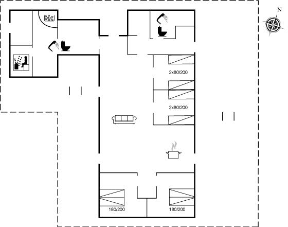 Der er i alt 4 soveværelser. Sovepladserne fordeler sig på: 4 sovepladser i dobbeltsenge. 4 sovepladser i enkeltsenge. Derudover er der 1 stk. barneseng.