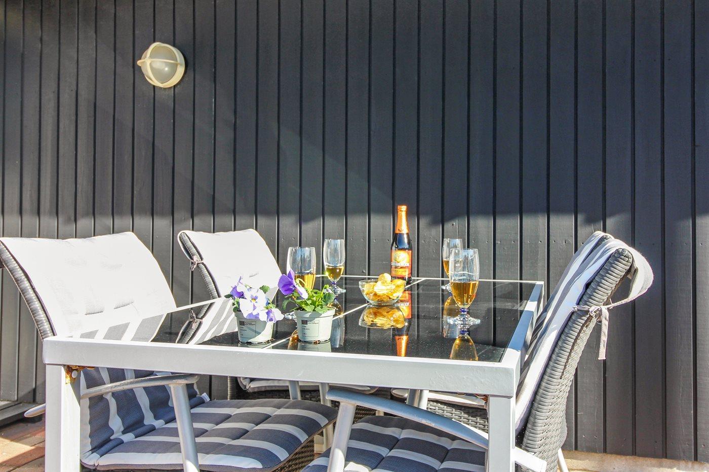Ferieboligen er beliggende på en 1474 m² stor naturgrund. Der er 275 m til havet. Nærmeste forretning er beliggende i en afstand af 3700 m. Der er en golfbane i en afstand af 4800 m. Til ferieboligen hører 55 m² terrasseareal. Der er installeret stik til opladning af elbil. Type 2 stik. Parkering ved ferieboligen.