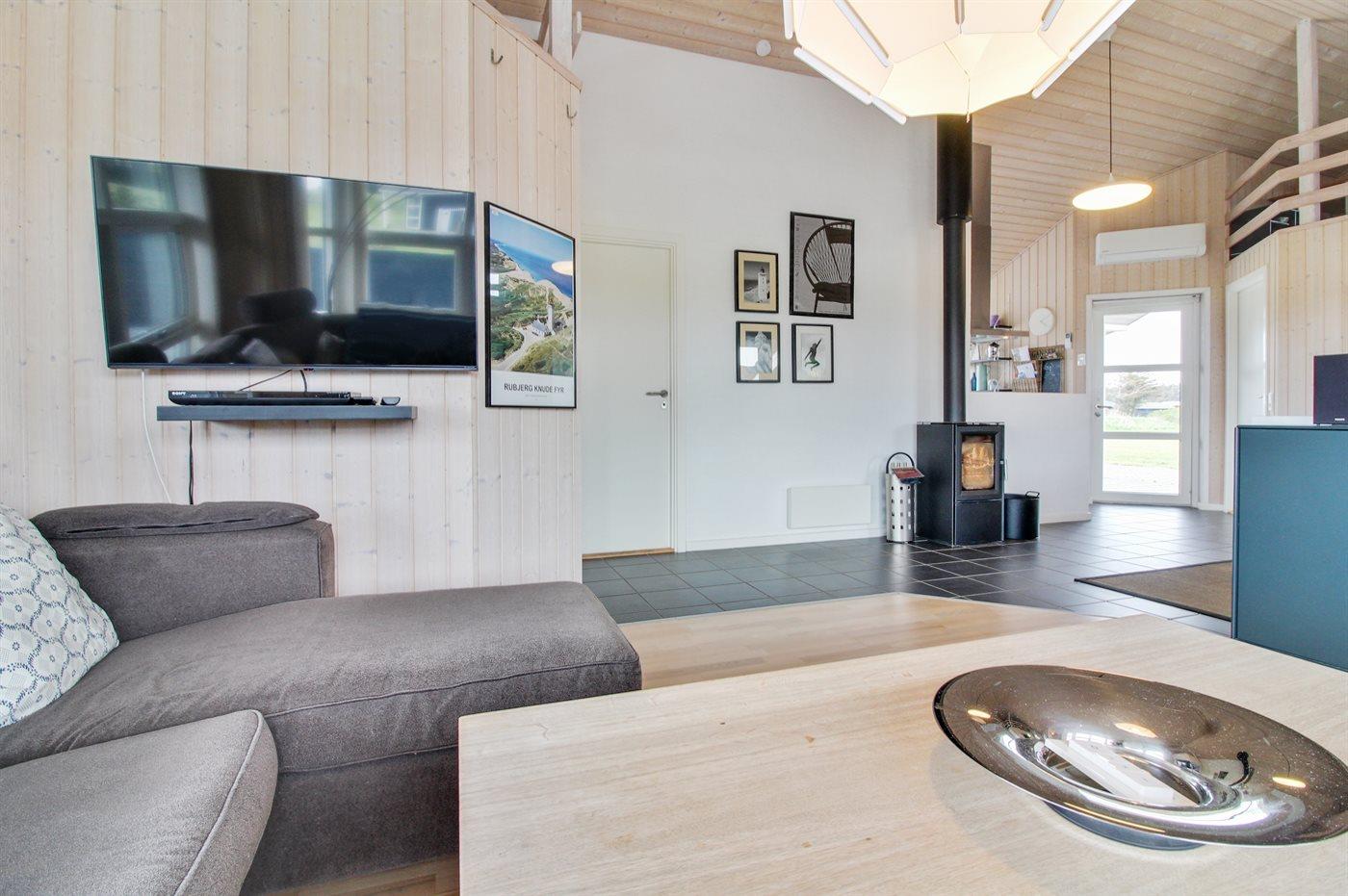 I ferieboligen er der 1 Smart-TV. DVD-afspiller. Radio. CD-afspiller. Der er mindst 4 danske kanaler. 1-3 svenske kanaler. 1-3 norske kanaler. Mindst 4 tyske kanaler. 1-3 engelske kanaler. Der er trådløst, stabilt internet til rådighed (200/200 Mbit).