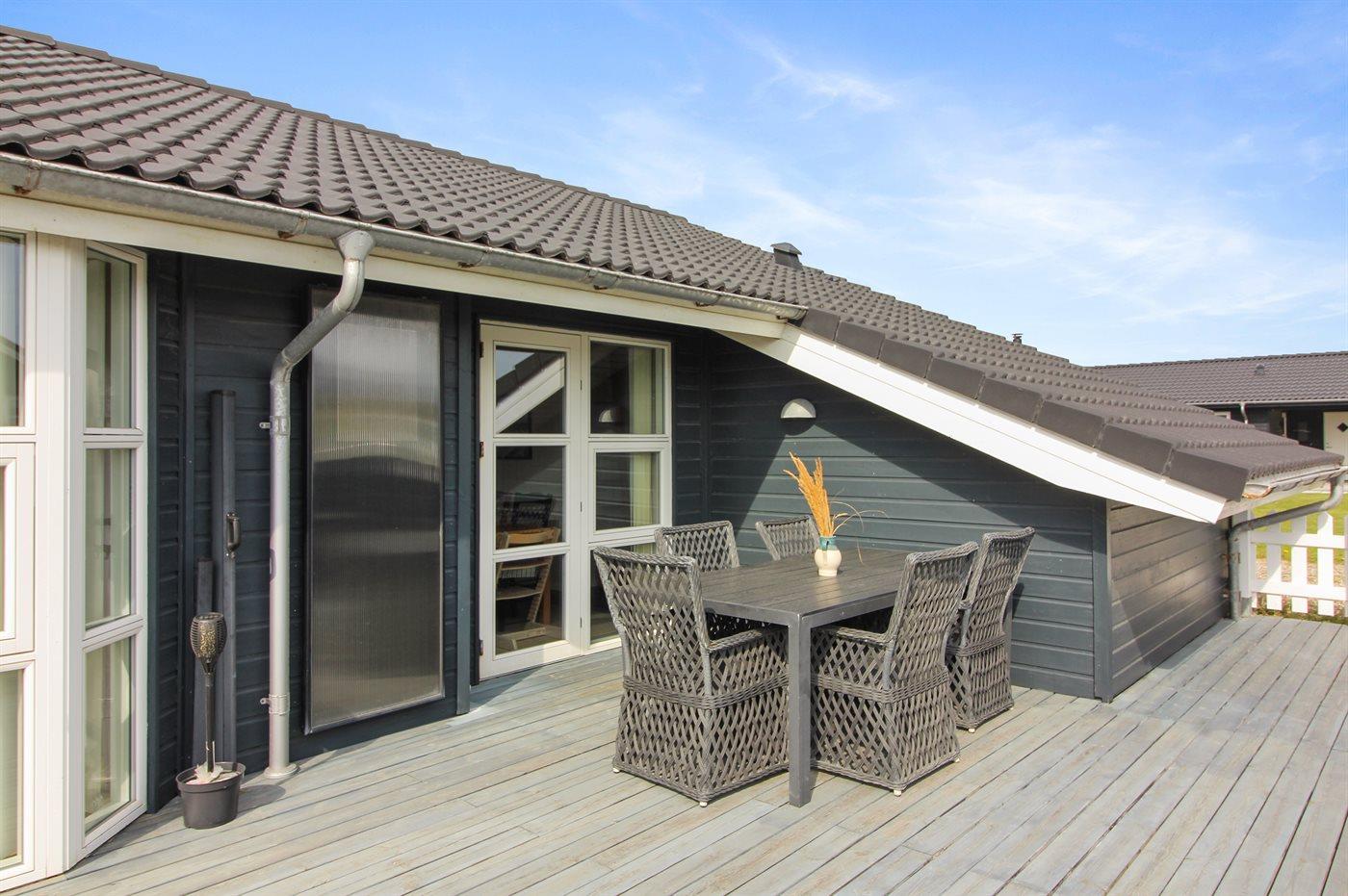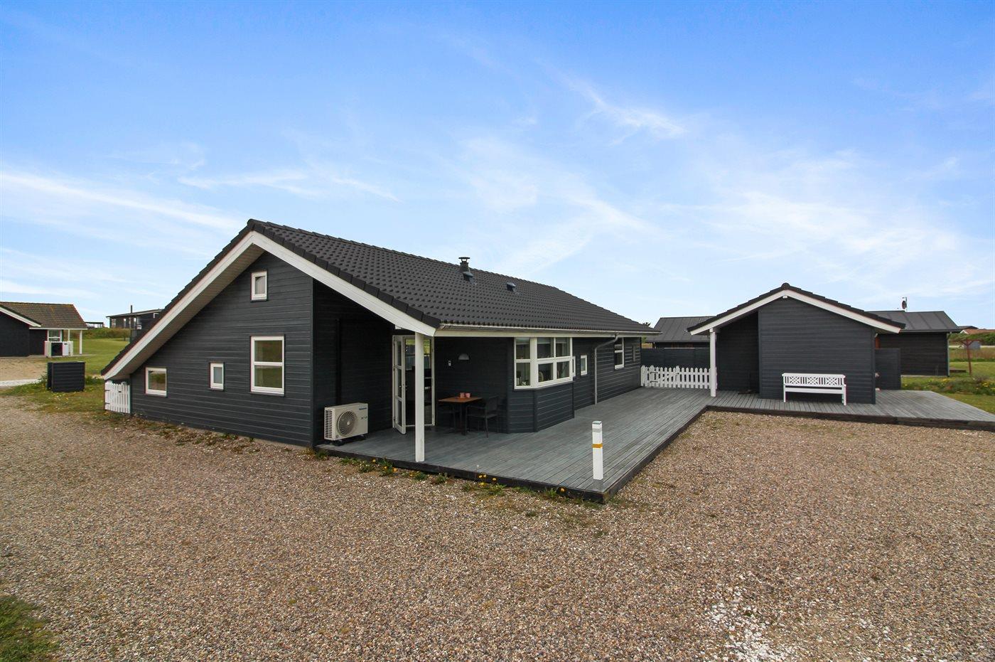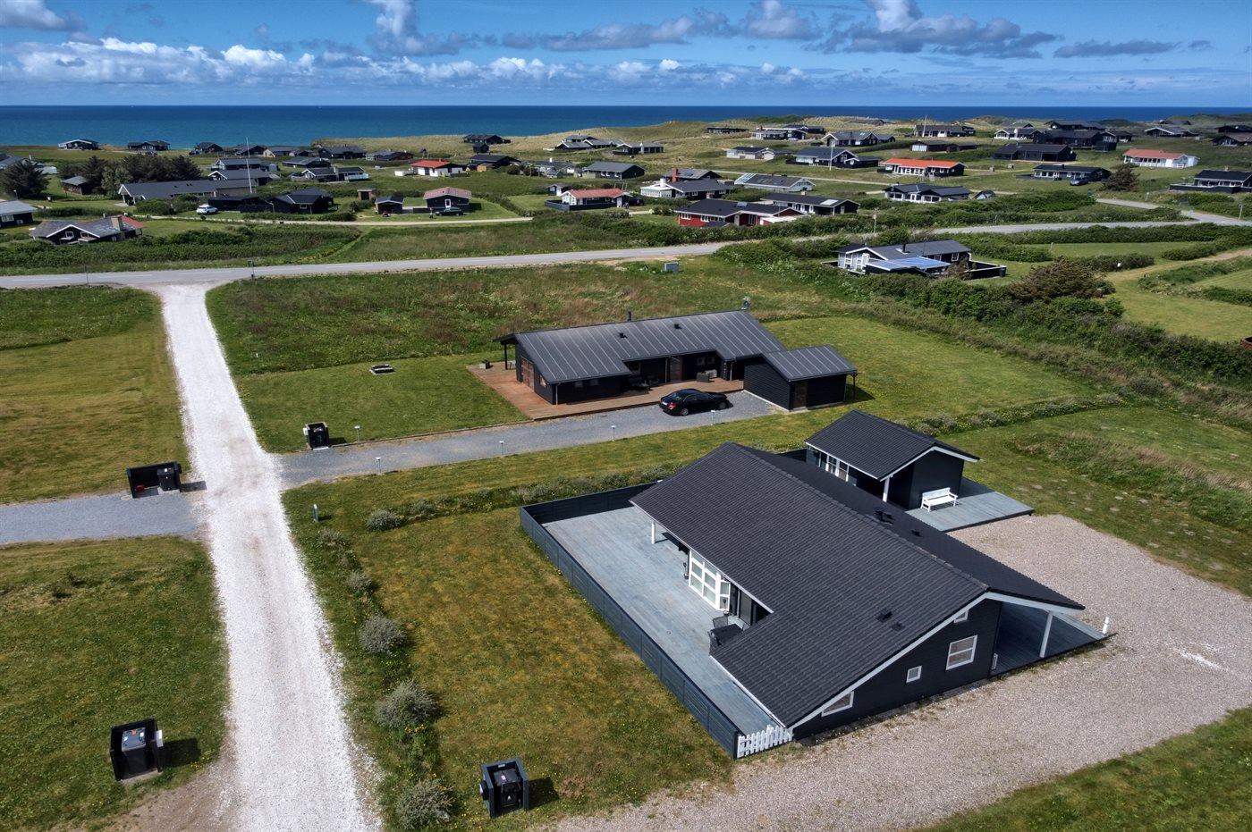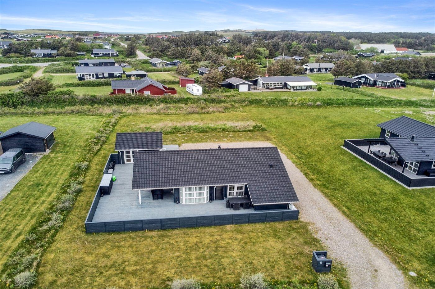 Ferieboligen er beliggende på en 1089 m² stor naturgrund. Der er 400 m til havet. Nærmeste forretning er beliggende i en afstand af 800 m. Til ferieboligen hører 230 m² terrasseareal. Desuden er der 43 m² overdækket terrasse. Heraf i alt 175 m² lukket terrasse. Der er redskabsrum. Sandkasse. Grill til rådighed. Parkering ved ferieboligen.
