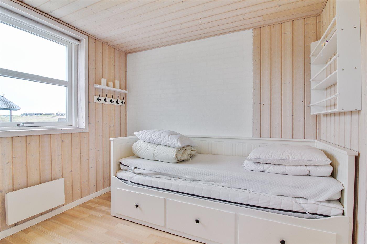 Der er i alt 3 soveværelser. Sovepladserne fordeler sig på: 4 sovepladser i enkeltsenge. 2 sovepladser i sovesofa (dobbelt). Derudover er der 1 stk. barneseng.