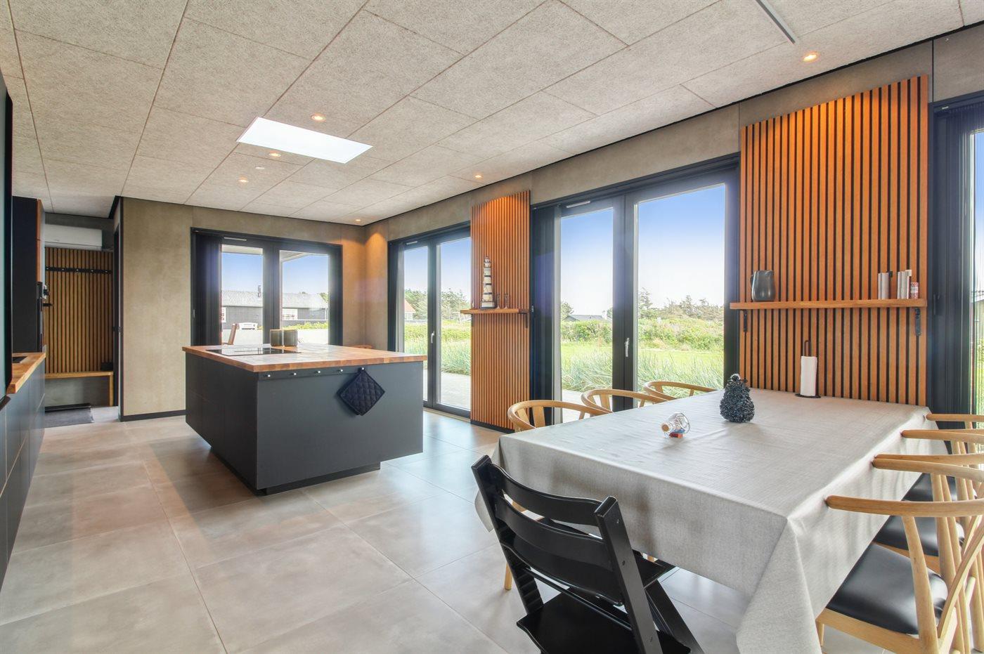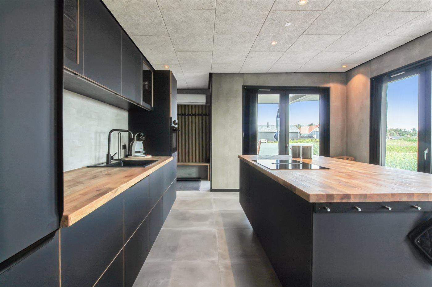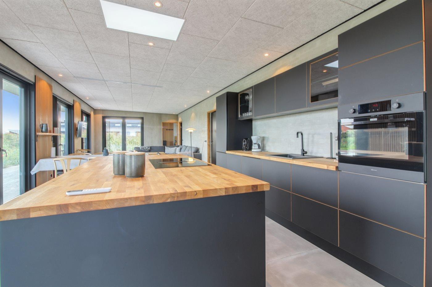 Køkkenet er udstyret med 1 køleskab. Der er 4 induktionskogeplader, varmluftovn, mikrobølgeovn samt opvaskemaskine.