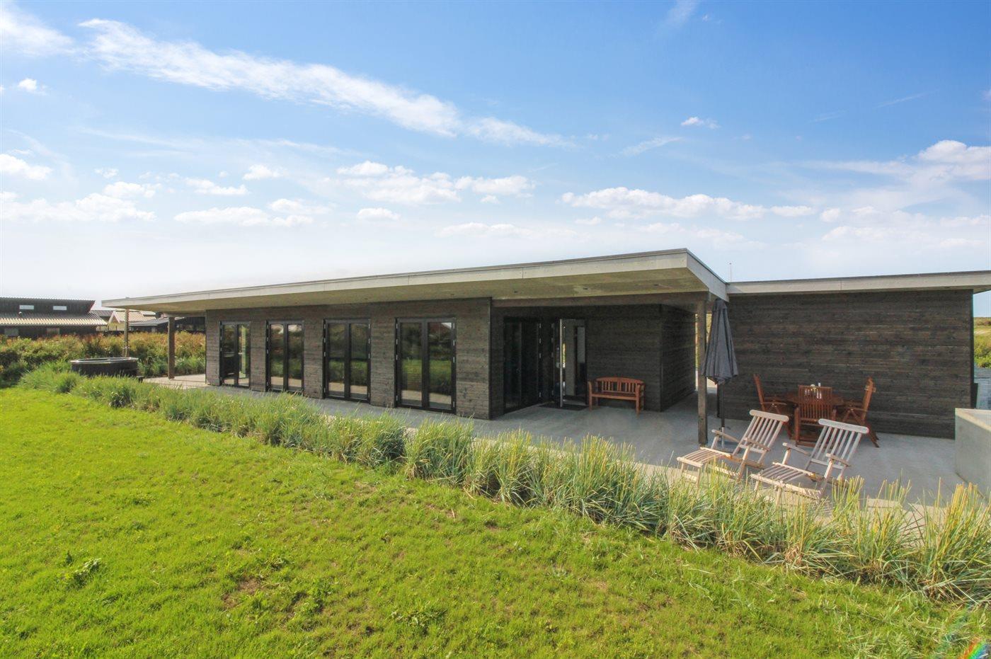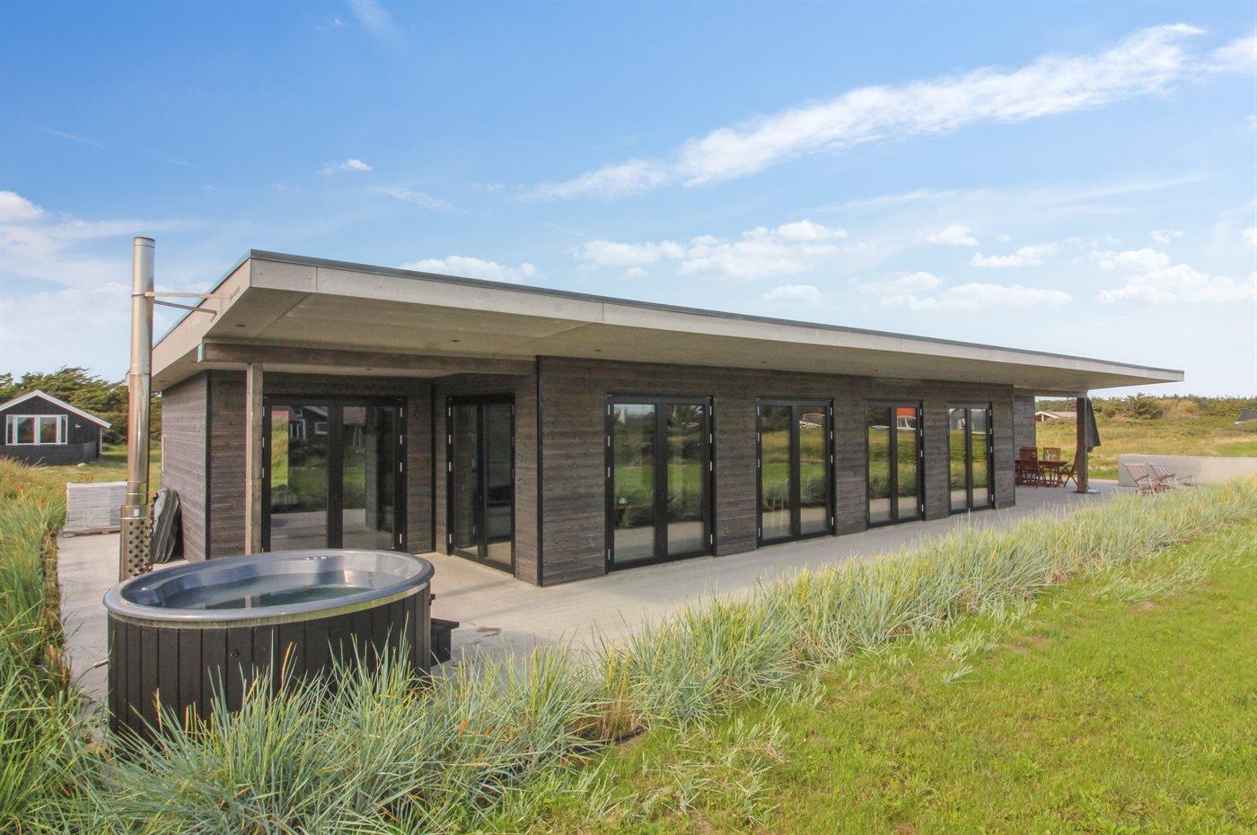 Moderne sommerhus med sauna og spa ved stranden