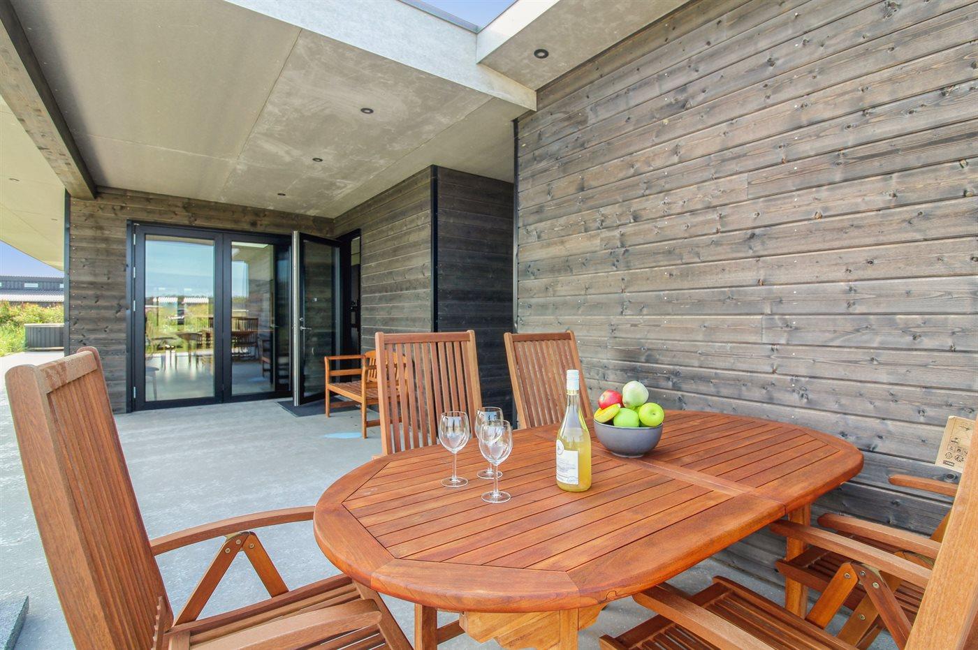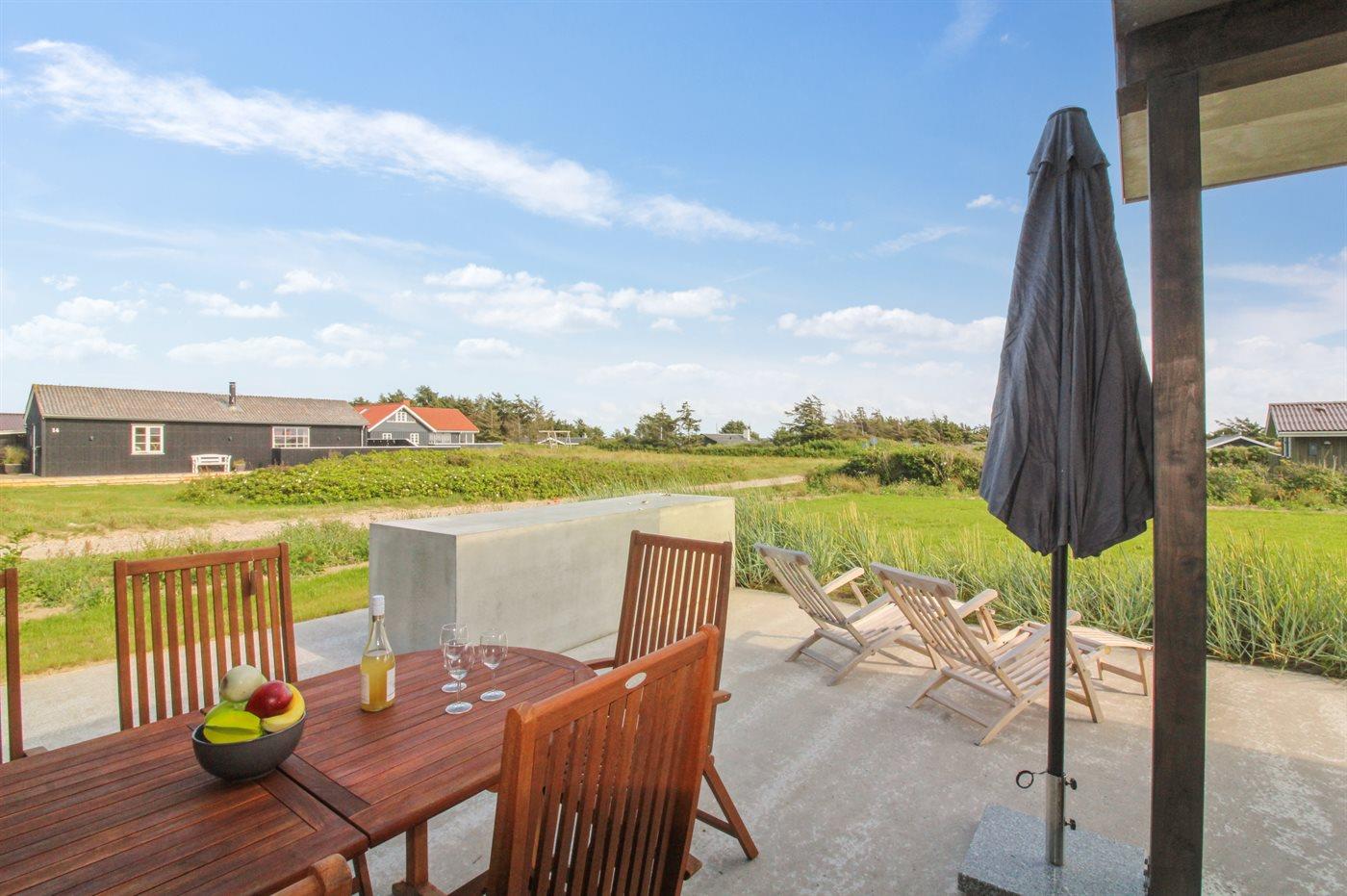 Ferieboligen er beliggende på en 1286 m² stor naturgrund. Der er 200 m til havet. Nærmeste forretning er beliggende i en afstand af 200 m. Til ferieboligen hører åbent terrasseareal. Desuden er der overdækket terrasse. Grill til rådighed. Der er garage til rådighed. Der er installeret stik til opladning af elbil. CEE stik. Parkering ved ferieboligen.