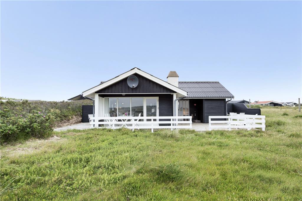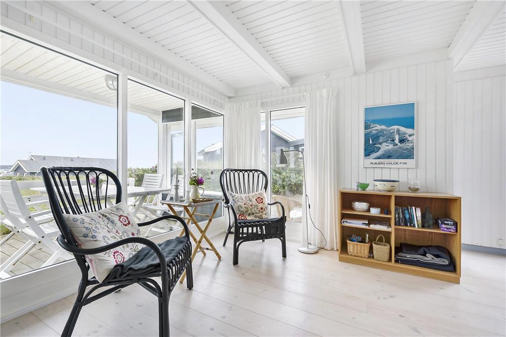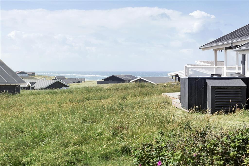 Huset er beliggende på en pragtfuld klitgrund kun ca. 100 meter fra stranden og med en forrygende udsigt over området og havet. Terrassen snor sig om hele husets vestlige side og der er gode muligheder for at nyde sommerens sol og varme samt de fantastiske omgivelser og natur. Den overdækkede terrasse er afskærmet mod vest og dermed perfekt til grillhygge med familien på de lune sommeraftener med havets brusen i baggrunden. Her er naturligvis også havemøbler, liggestole og grill til rådighed.
