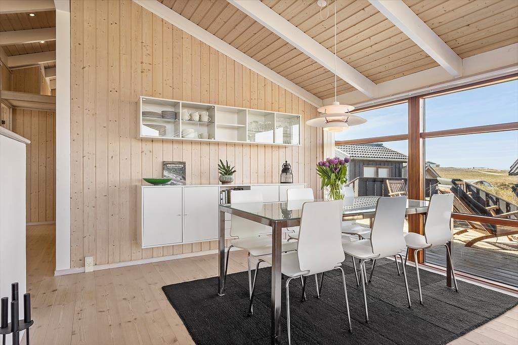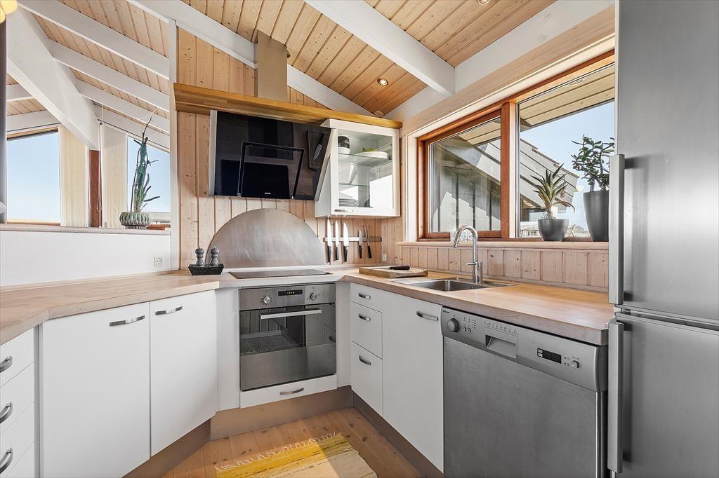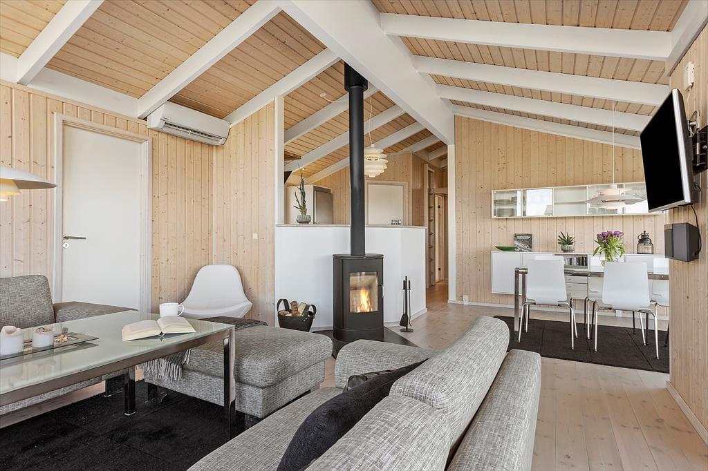Sommerhuset er bygget i kvalitetsmaterialer og indrettet på en god, funktionel måde, med sans for overblik og med et strejf af personlighed. De store vinduespartier i stueområdet samt det faktum, at der er loft til kip, er med til at skabe et helt perfekt lysindfald i alle husets kroge. Huset er opført i 2009 og fremstår yderst velholdt med flotte detaljer i byggestilen. Huset er smagfuldt indrettet med gedigne kvalitetsmøbler. Den flotte, centralt placerede brændeovn er med til at skabe en hyggelig stemning i huset, og den energibesparende varmepumpe er med til at holde udgifterne til elektricitet på et minimum. Stuearealet er i åben forbindelse til køkken-alrummet, hvor man ligeledes bliver imponeret over den gennemførte stil med gode hvidevarer og høj kvalitet. Tre dejlige soverum med gode senge. Lækkert badeværelse, hvor der er god plads til at skabe en hyggelig og afslappende atmosfære med et skønt spabad og en dejlig sauna. Alt i alt et fantastisk hus, hvor man kan nyde sin ferie i de absolut bedste omgivelser.
