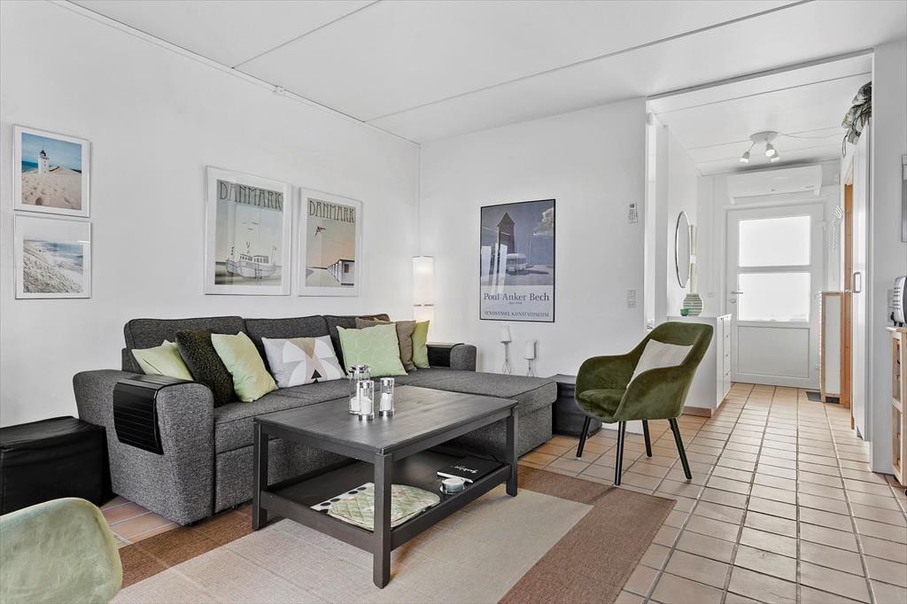Lejligheden, som ligger i stueplan, er perfekt indrettet til to personer, da lejligheden byder på et soveværelse med dobbeltseng, et badeværelse med brusefaciliteter og en dejlig stue med integreret køkkenafdeling. Hvis man bliver flere personer kan sovesofaen i stuerummet slåes ud. Alle rum fremstår velholdte og indbydende, og takket være den åbne indretning og den enkle farvesætning er atmosfæren lys og let. Uanset hvad I bruger dagene på, har I en perfekt ramme til at komme helt ned i afslappet ferietempo: Måske hygger I om madlavningen og fremtryller lækkerier i det funktionelt indrettede køkken – eller måske vil I hellere vil slappe af i sofaen med et yndlingsprogram i TV, en god bog og krydsogtværser på mere tilbagelænet vis. Vaskemaskine og tørretumbler kan i fællesrummet benyttes gratis (åben fra påske til efterårsferien).