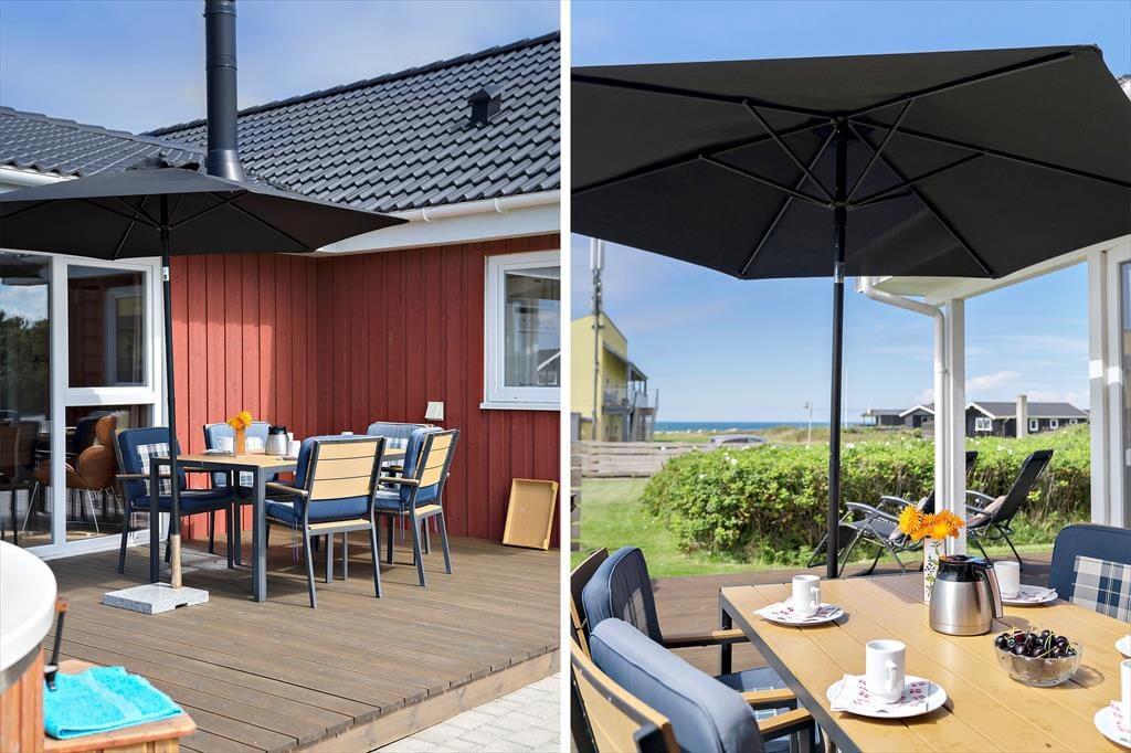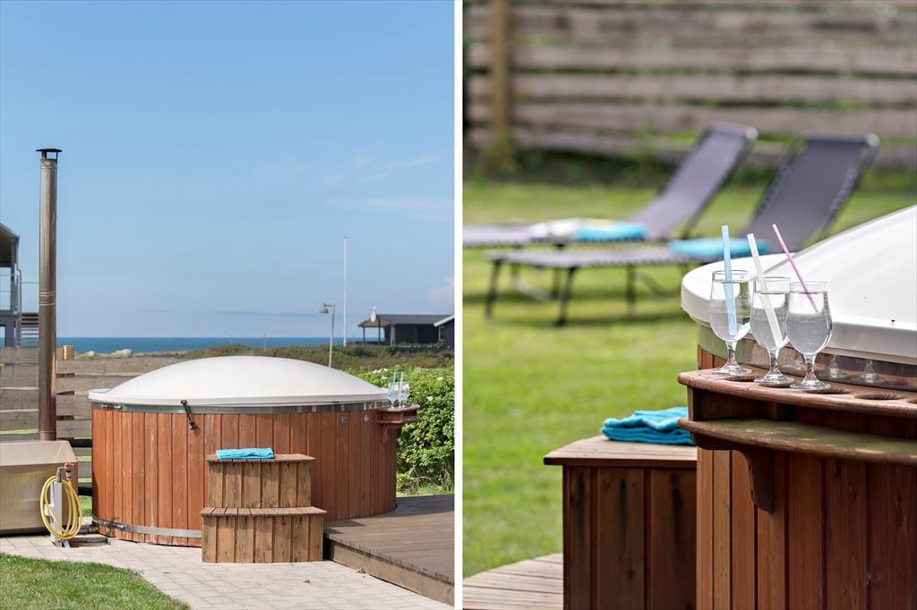 Mulighederne for selvforkælelse fortsætter ude i det fri på den 1.253 m2 store grund. Det føles nemlig som ren luksus at slikke sol og nyde havudsigten på den delvist overdækkede terrasse, der ligger sydvest for huset. Og som prikken over i’et kan I slappe af i vildmarksbadet, når I vender hjem fra en feriedag fuld af oplevelser.